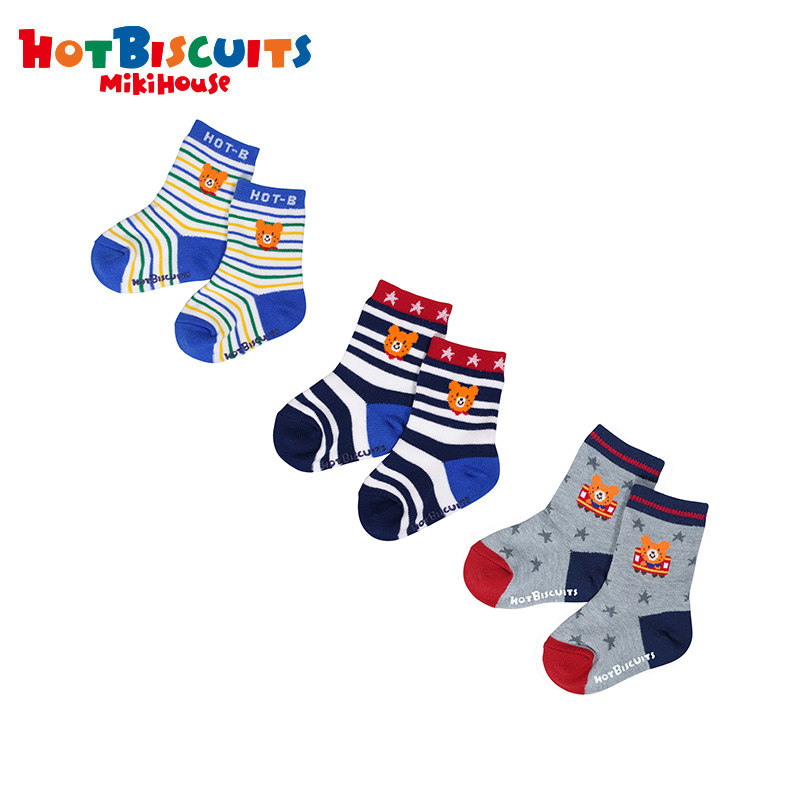 Хлопковые носки с тремя частями набор Mikihouse Hot Biscuits Детский комфортный мультипликационный принт милый новый стиль