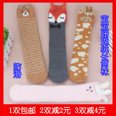 Детские демисезонные гольфы, нескользящие коралловые бархатные носки для новорожденных, 0-3-6 мес.