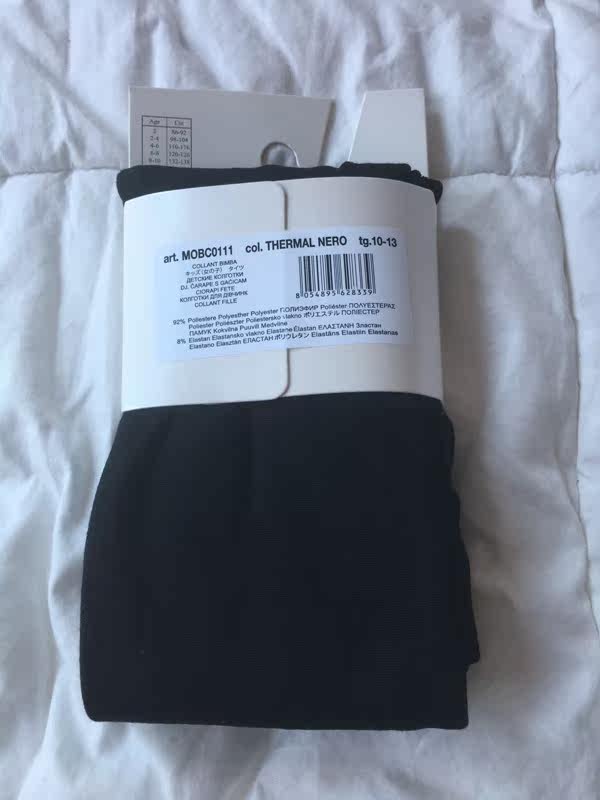 Зимние детские утепленные базовые черные колготки, Италия
