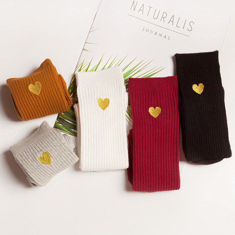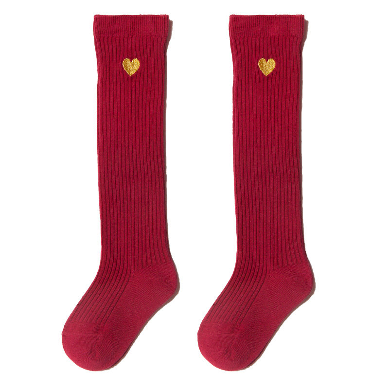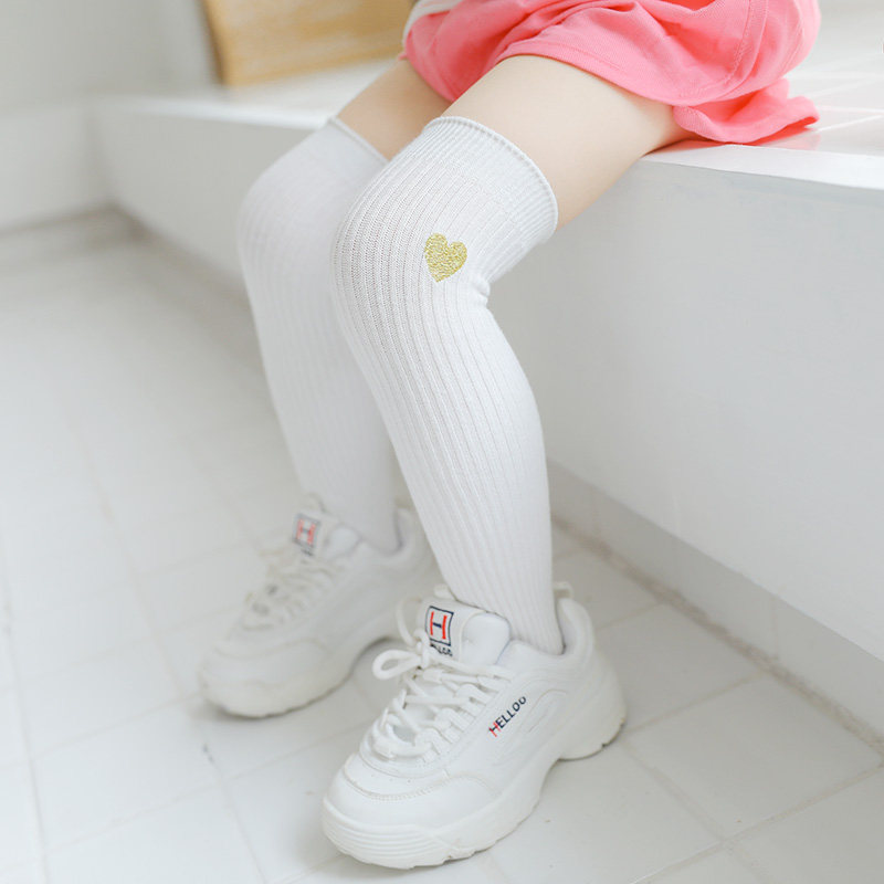 Хлопковые демисезонные гольфы для девочек, детские носки, высокие сапоги, с вышивкой, длина миди
