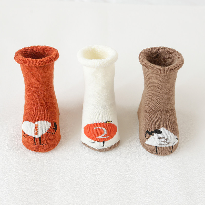 Детские нескользящие демисезонные носки подходит для мужчин и женщин, увеличенная толщина, средней длины, 0-3 мес., 1-3-5 лет