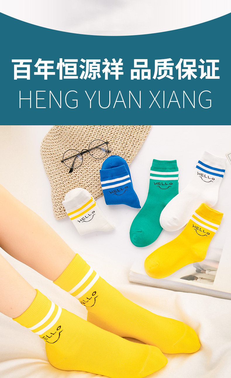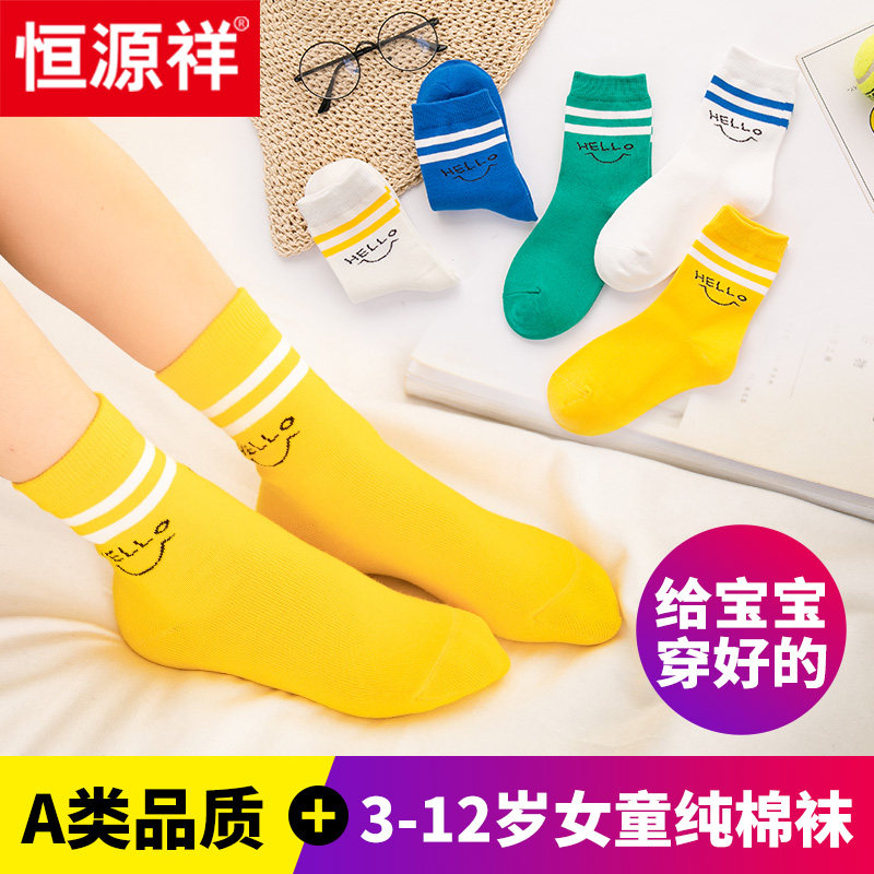 恒源祥 Хлопковые детские осенние носки, 9-11 лет, подходят для подростков, средней длины