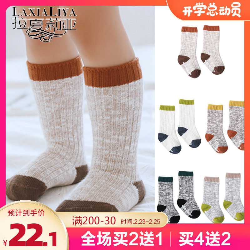 Детские нескользящие гольфы, хлопковые осенние носки для новорожденных для мальчиков, средней длины