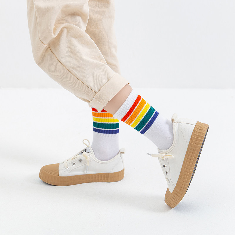 Детские хлопковые носки, тонкие демисезонные белые гольфы подходит для мужчин и женщин для мальчиков, средней длины