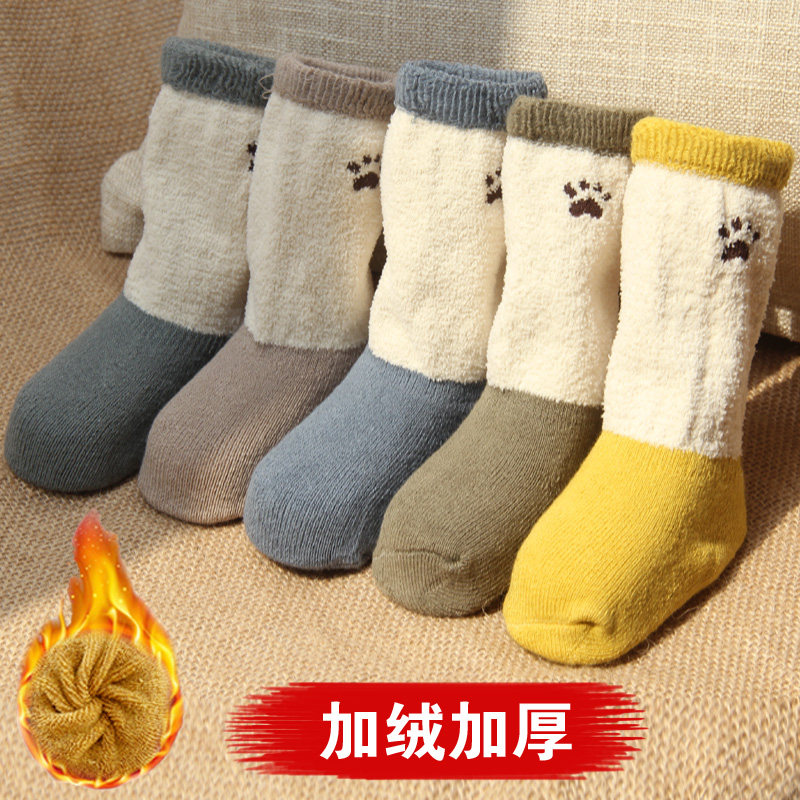 Зимние детские хлопковые демисезонные утепленные носки для мальчиков, средней длины