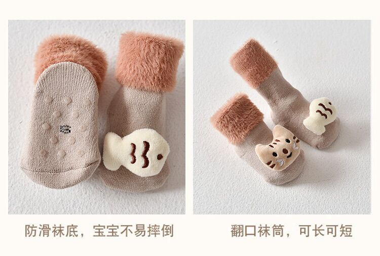 Детские демисезонные нескользящие носки, мультяшная бархатная детская кукла