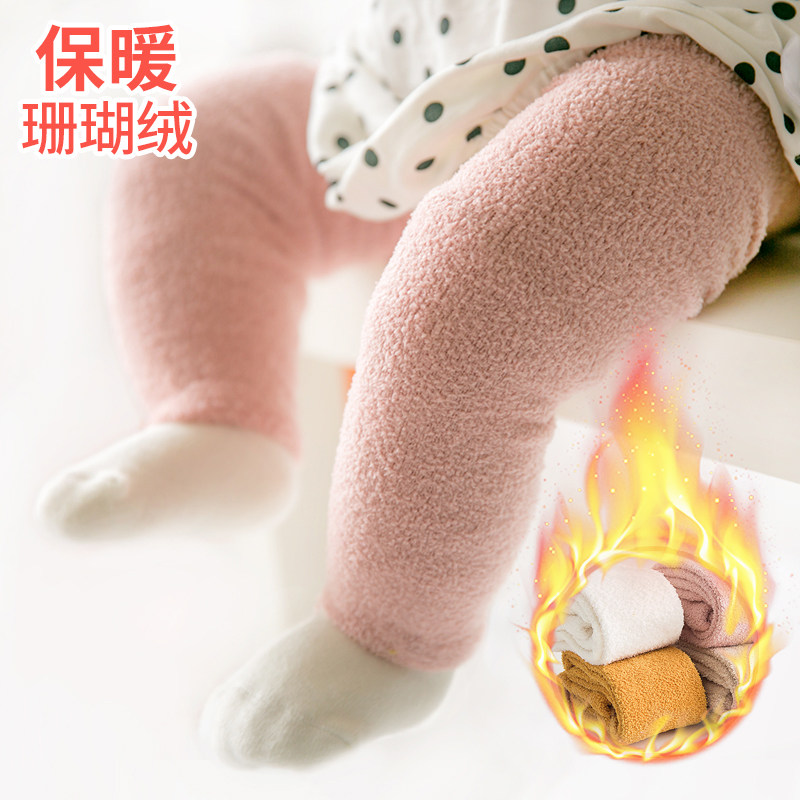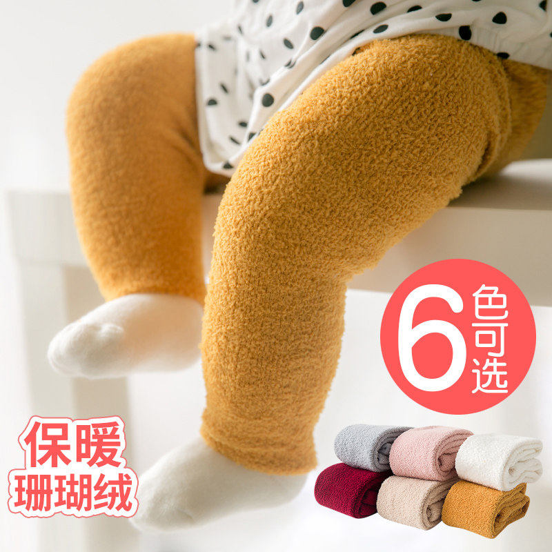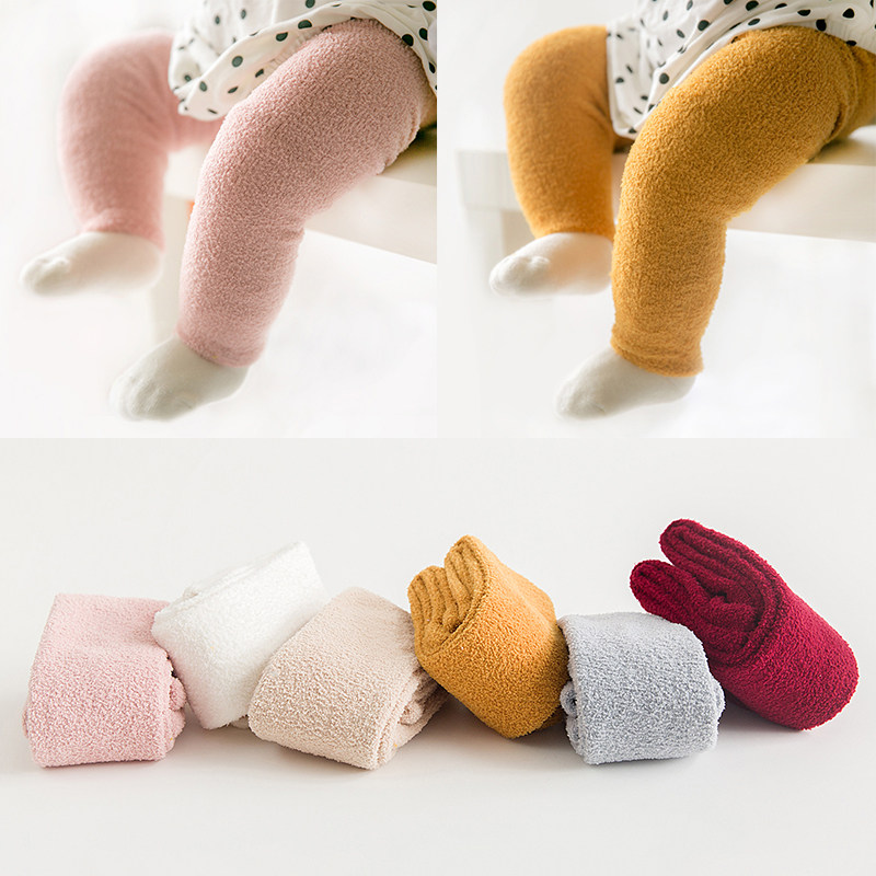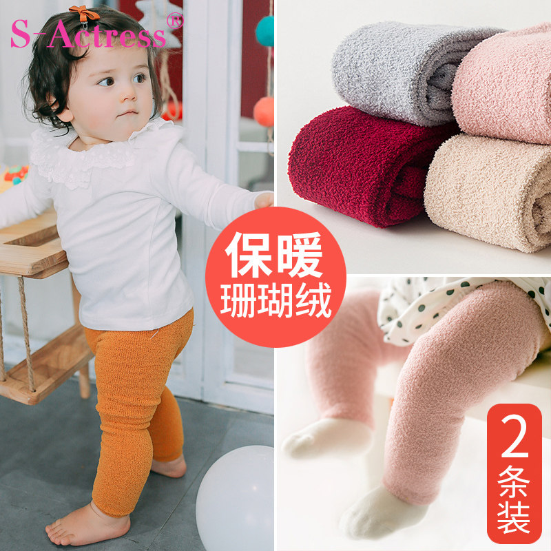 Детские коралловые бархатные леггинсы, демисезонные колготки, штаны, увеличенная толщина, в западном стиле