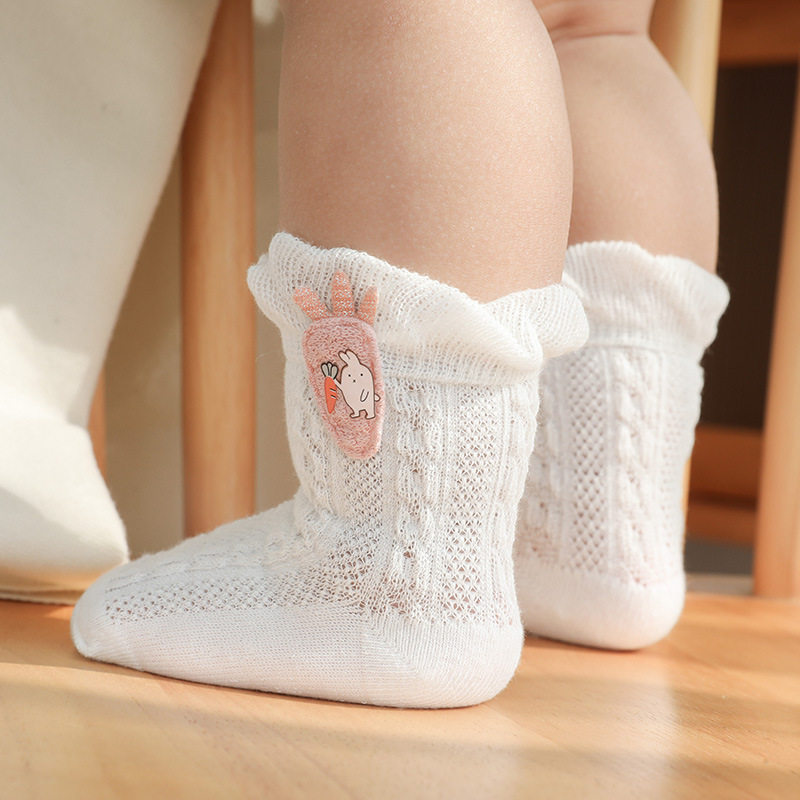 Детские летние тонкие носки, хлопковые милые дышащие гольфы для новорожденных, средней длины