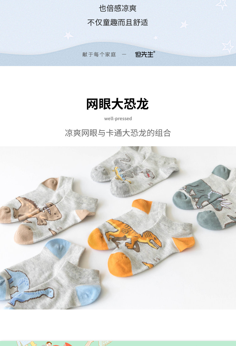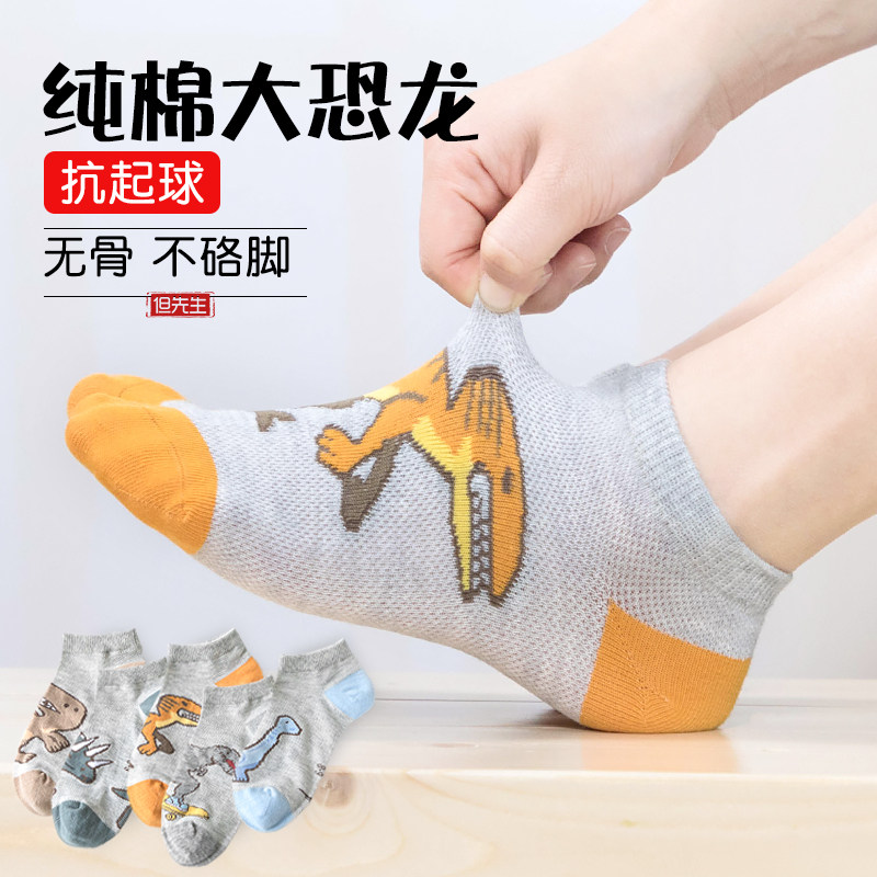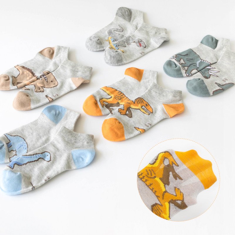 Летние тонкие дышащие хлопковые носки для мальчиков, детский динозавр, подходят для подростков