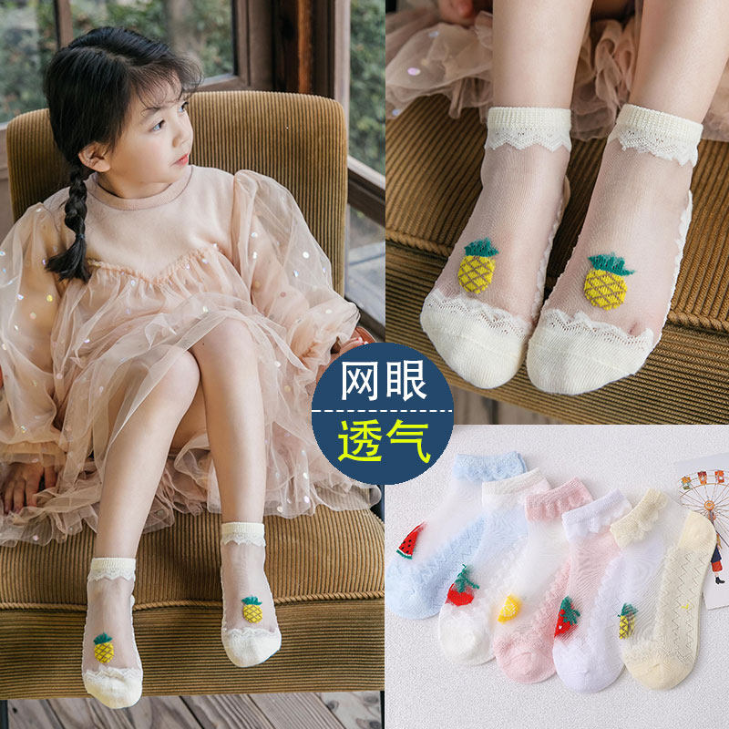 Детские летние тонкие носки, дышащие хлопковые колготки со стразами