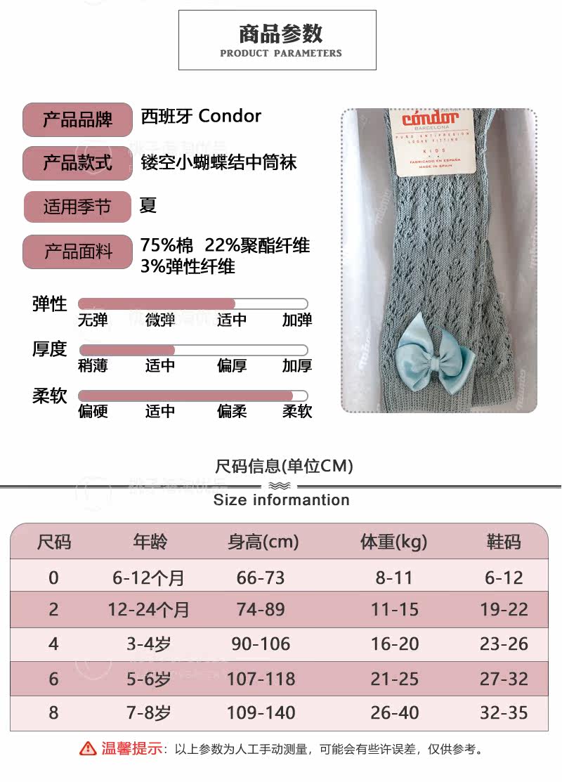 Летние дышащие базовые гольфы с бантиком, Испания, средней длины