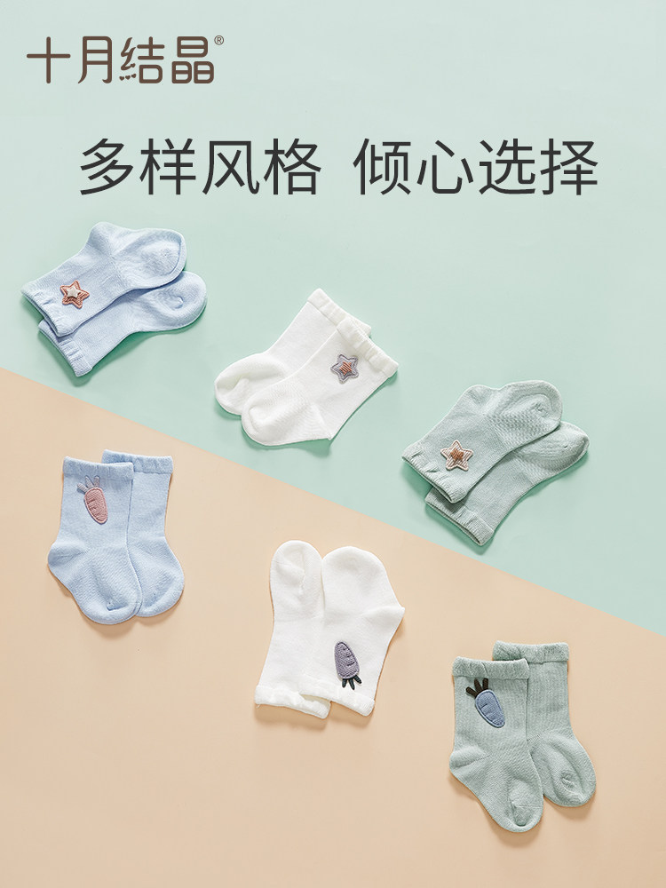 十月结晶 Детские осенние дышащие хлопковые носки для мальчиков для новорожденных, средней длины, 0-3 лет