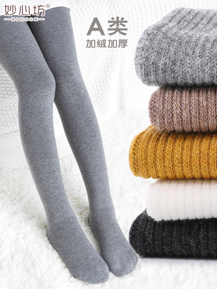 Осенние утепленные колготки, детские белые базовые леггинсы