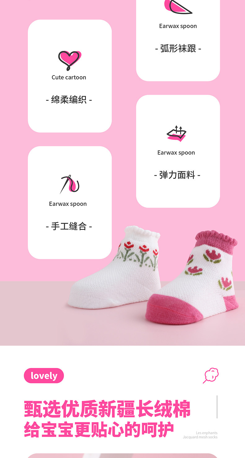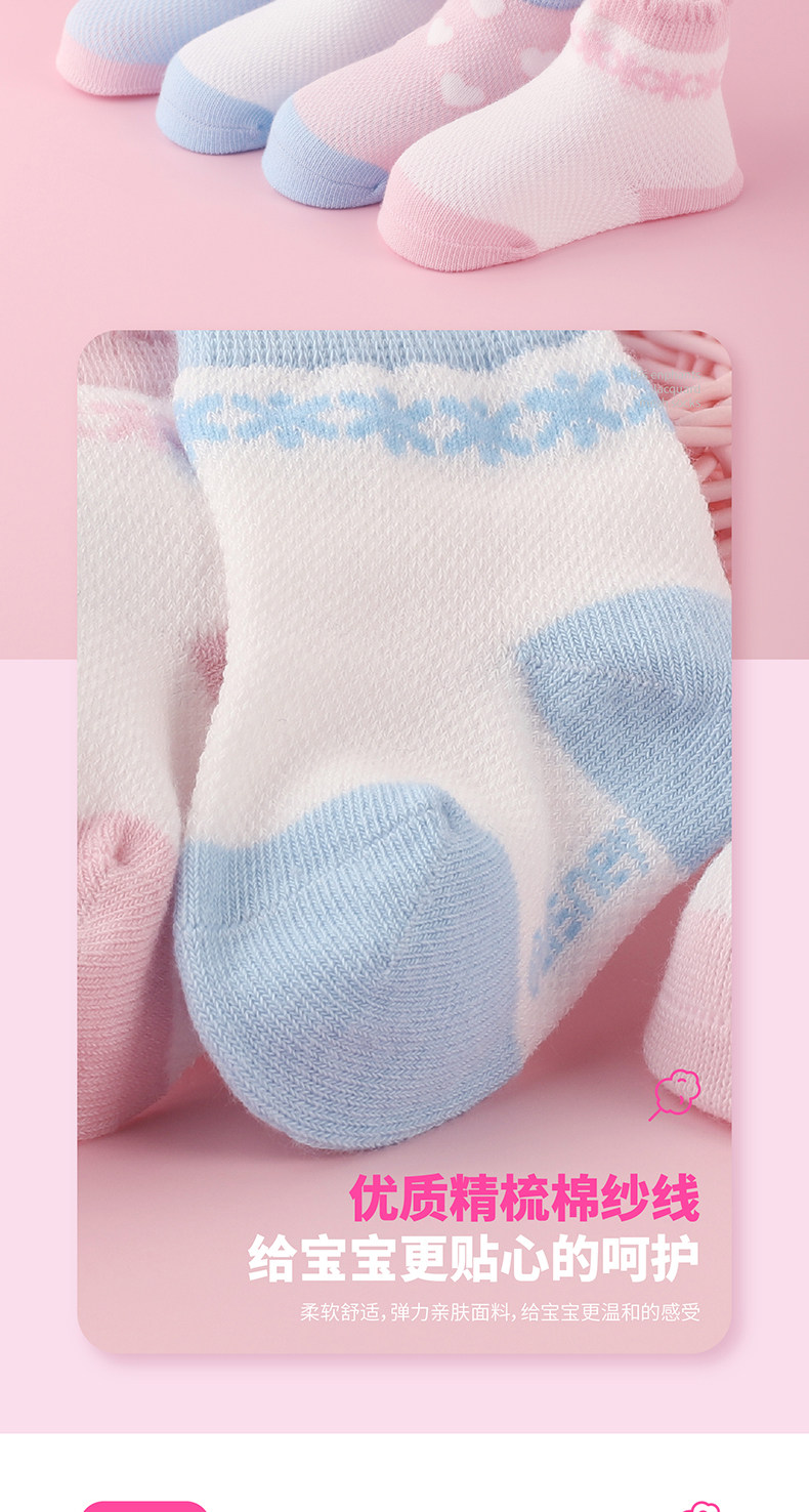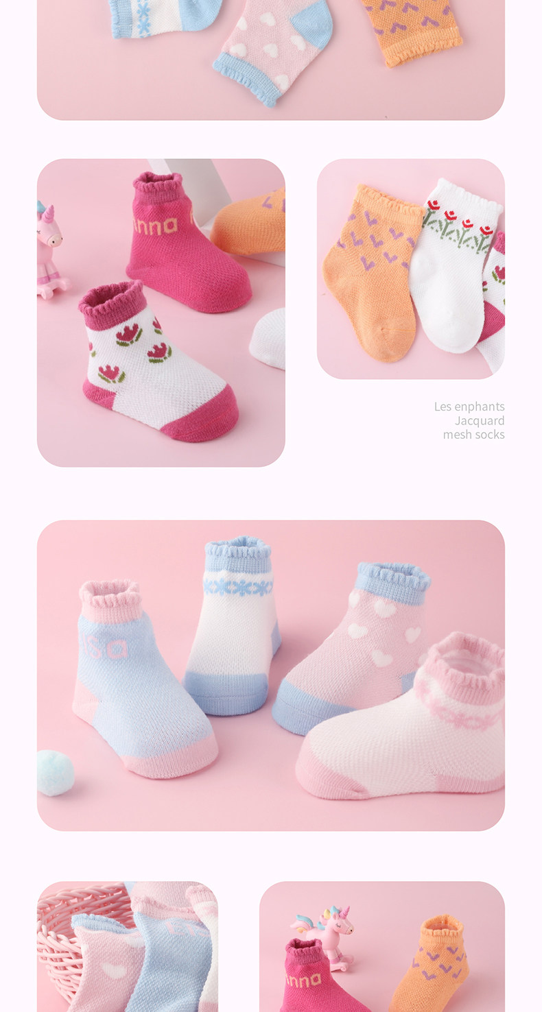 Хлопковые тонкие милые комфортные дышащие детские носки для новорожденных