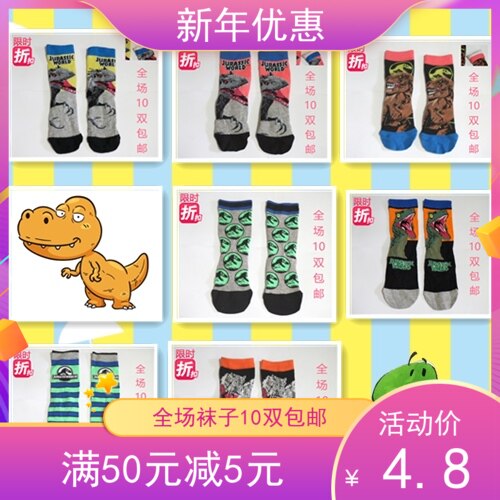 10 Двойной беззаботный юрский тиранозавр динозавр детские носки