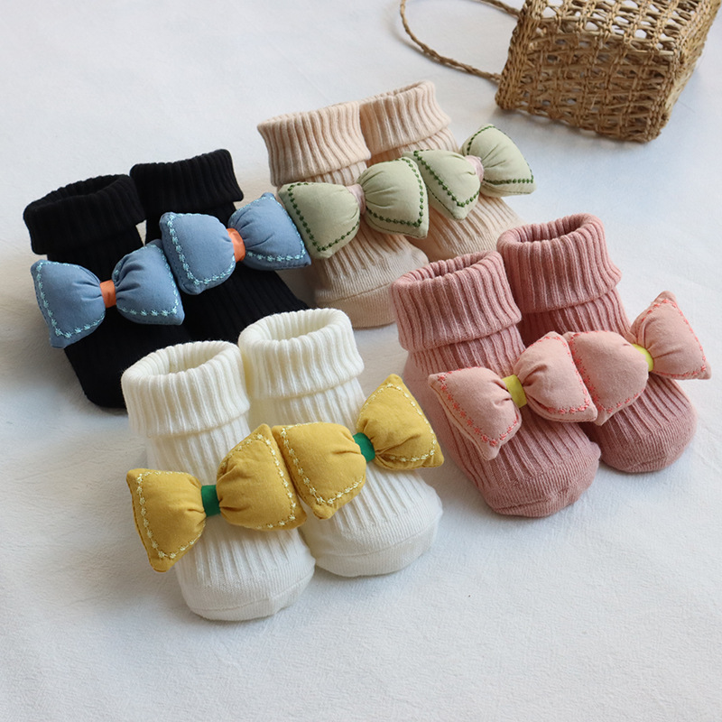 Брендовые детские нескользящие милые гольфы с бантиком для девочек, мягкие носки, популярно в интернете, средней длины