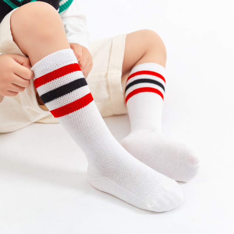 Детские гольфы, хлопковые носки для мальчиков, летние тонкие белые цветные высокие сапоги для школьников и студентов