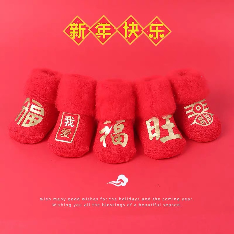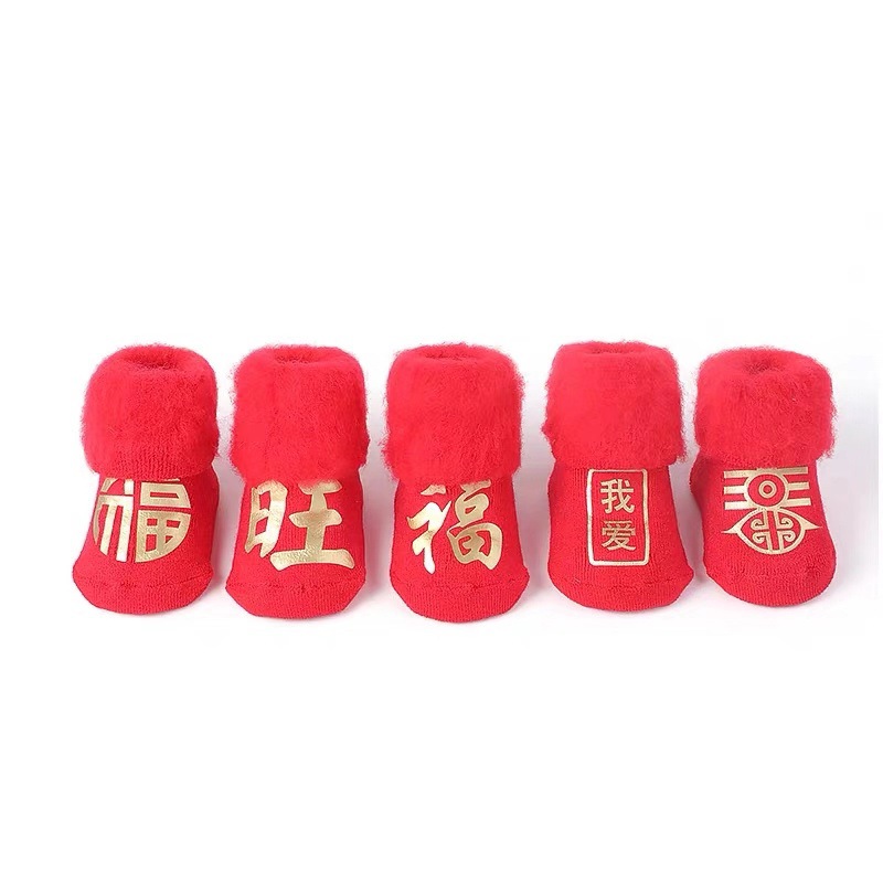 Детские демисезонные флисовые носки для новорожденных, удерживающий тепло детский зимний красный чай улун Да Хун Пао, увеличенная толщина