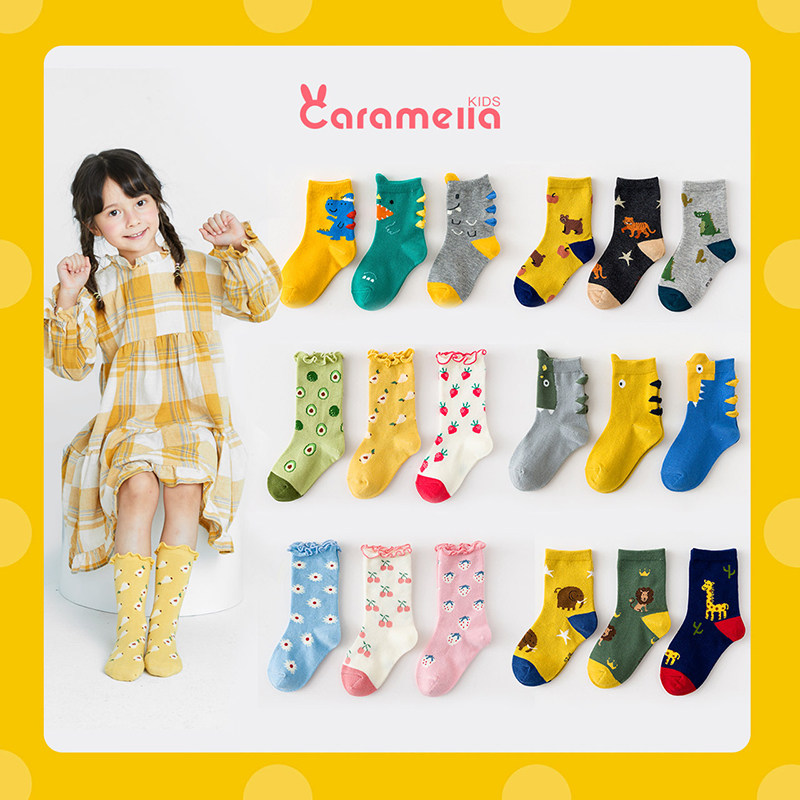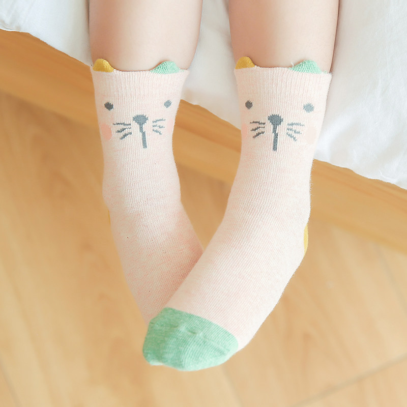 Детские мультяшные трехмерные носки, демисезонные милые хлопковые гольфы для мальчиков и девочек, средней длины