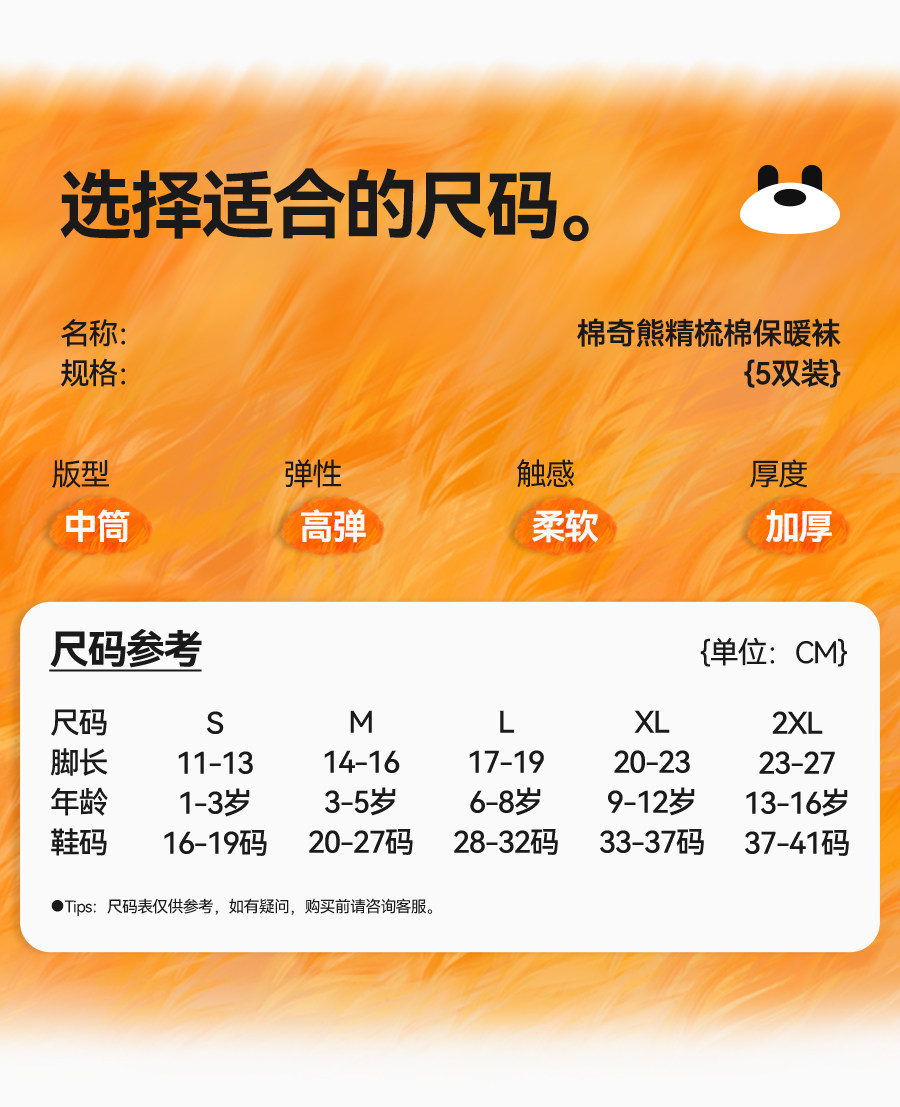 | Возрастная категория: | Рекомендуемая длина стопы для детей 1–3 лет составляет 11–13 см [размер обуви 16–19] [мягкий чистый хлопок, не скатывается], 3-5 лет предложения ноги 13-15 см [код обуви 19-25 ярдов] [2 набора скидки 3 Юань], Предложение 6-8 лет рекомендуется составлять 16-19 см [код обуви 25-32] [Любимый и покупка], 8-12 лет предложение 19-23 см [код обуви 32-36] [предпочтительнее] |