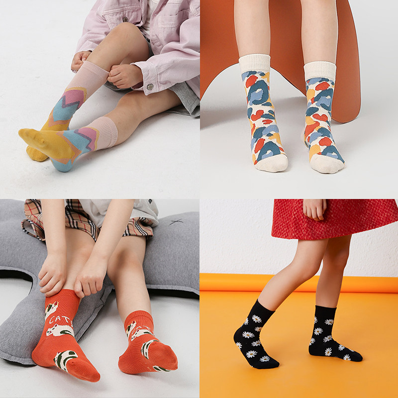 Детские хлопковые осенние демисезонные брендовые милые носки, средней длины, подходят для подростков
