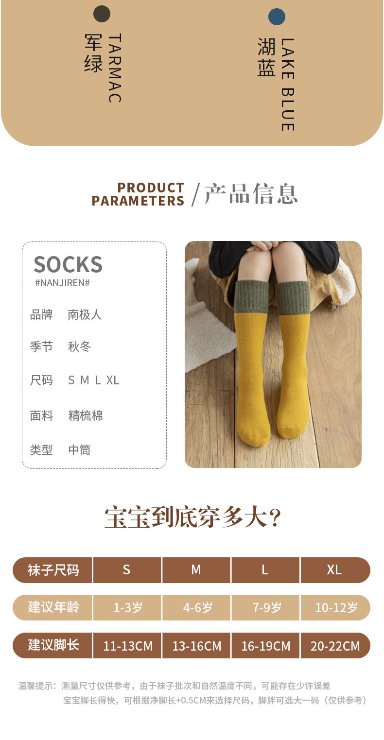 | Возрастная категория: | S код (1-3 года рекомендуется в длину 11-13 см) (качество младенцев), M-код (4-6 лет рекомендуется иметь длину 13-16 см) (удобно для кожи и дышащие), L Код (6-9 лет Рекомендуемые ноги 16-19 см) (без флуоресцентного агента), XL-код (длиной 10-22 см) (10-22 см) (высокие бомбы и ноги Нова) |