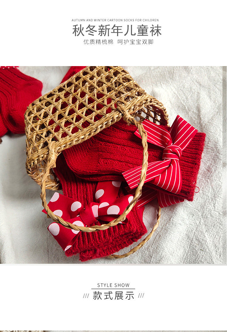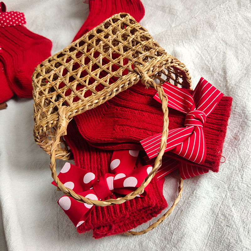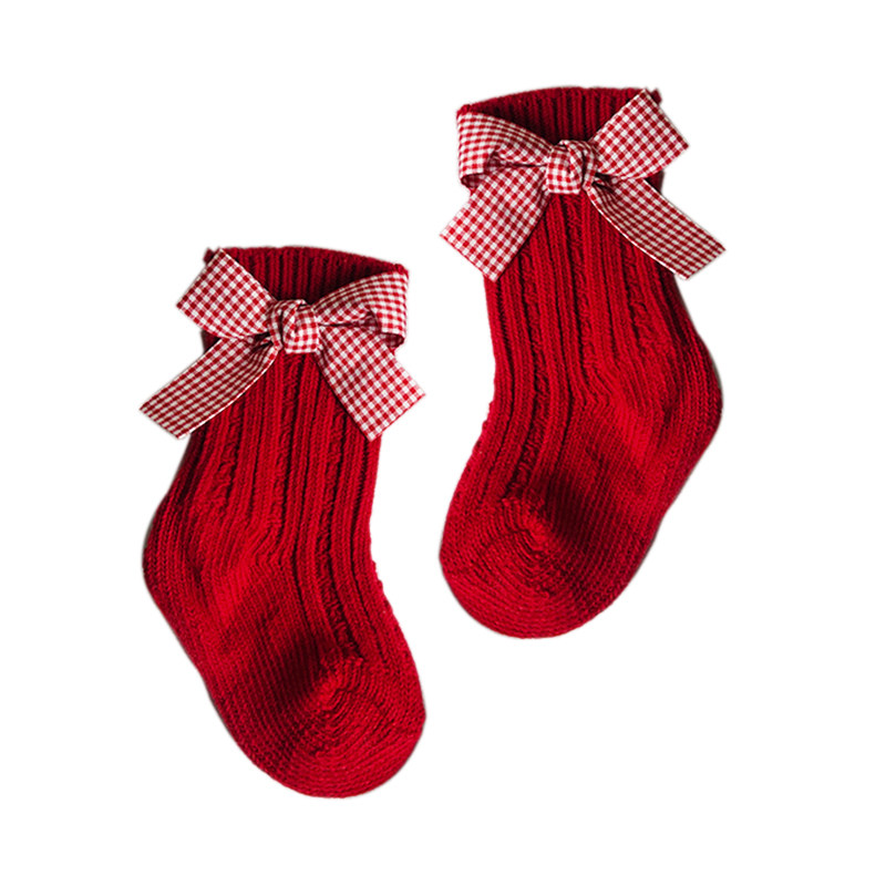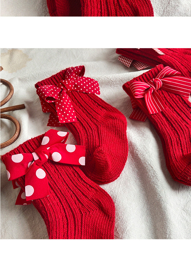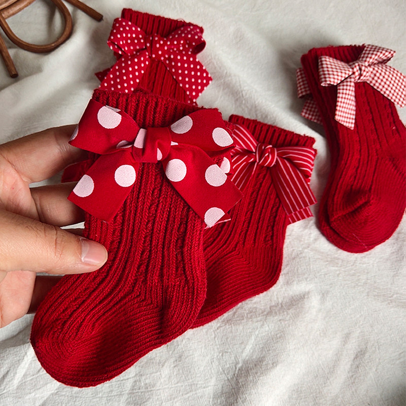 Детские красные гольфы, носки с бантиком, средней длины, подарок на день рождения