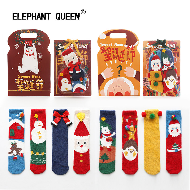 Красная подарочная коробка, зимние носки, коралловые бархатные детские гольфы, средней длины, увеличенная толщина, семейный стиль