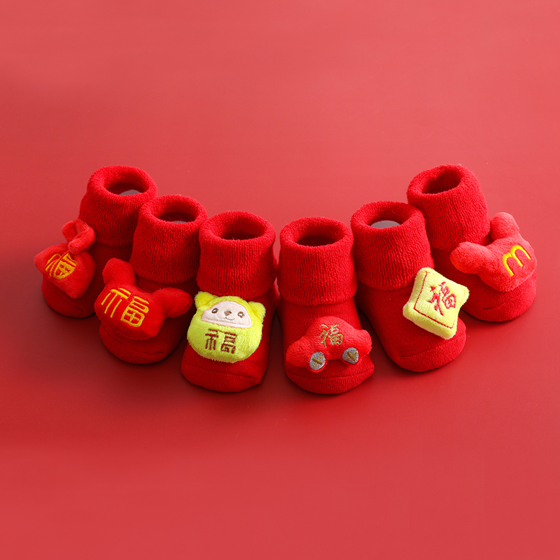 Детские красные Новые носки осень на зимней зиме сгущенным плюс бархатный хлопок новорожденный ребенок -годовой годовой год.