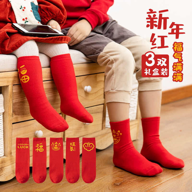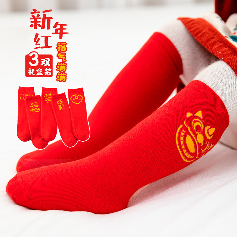 Детские демисезонные носки для мальчиков, детский хлопковый красный оберег на день рождения, увеличенная толщина
