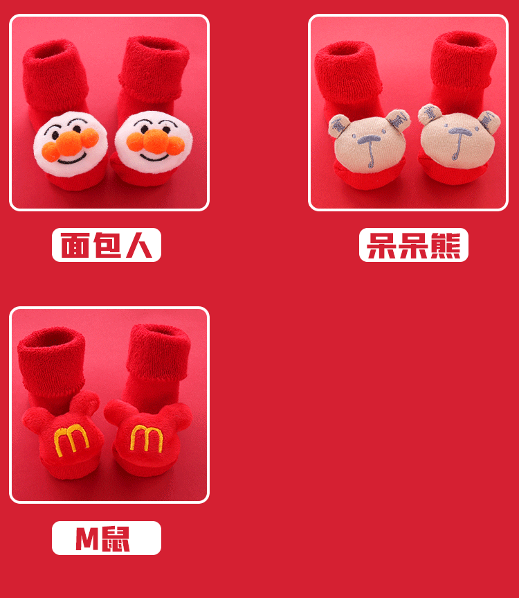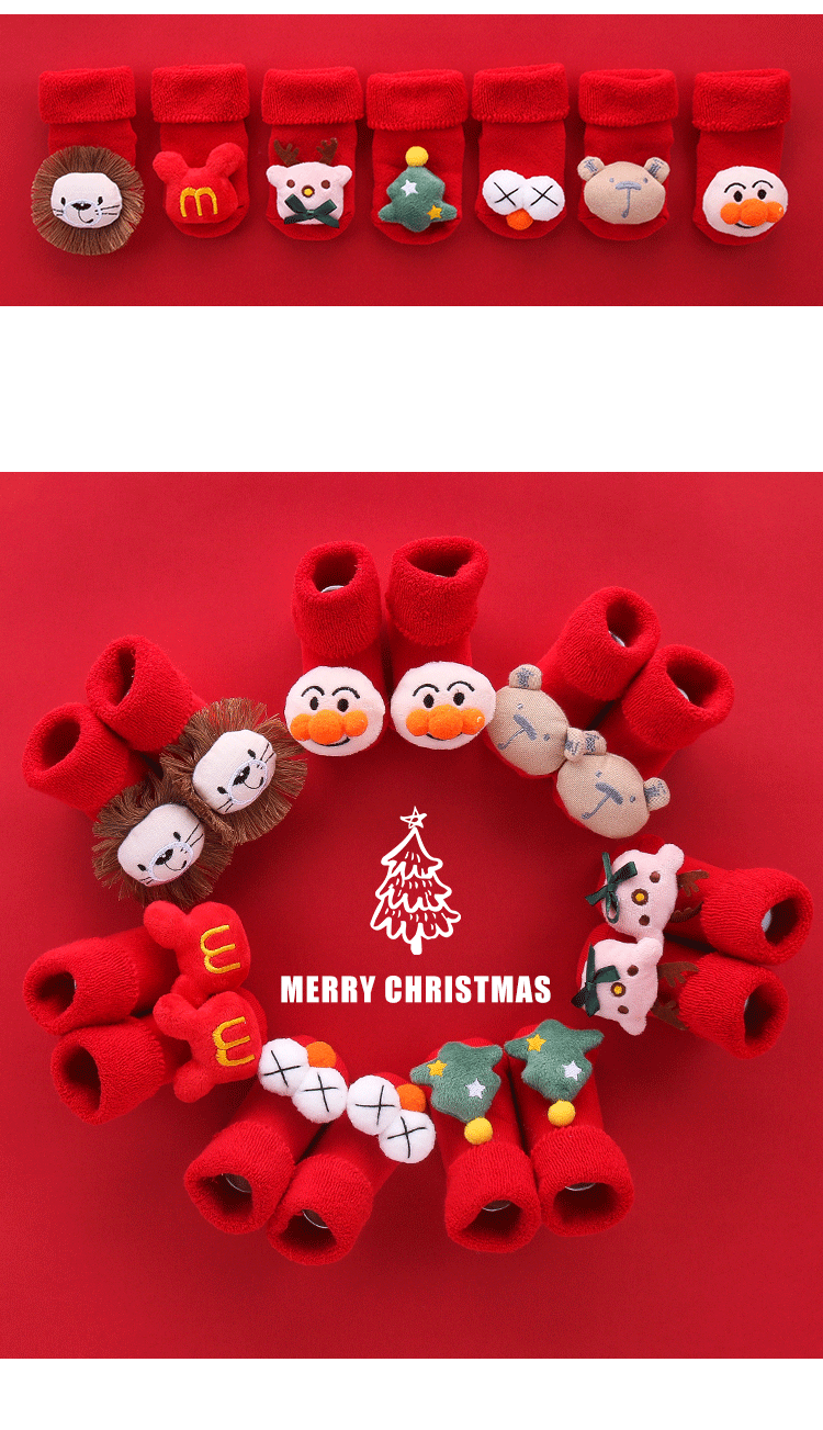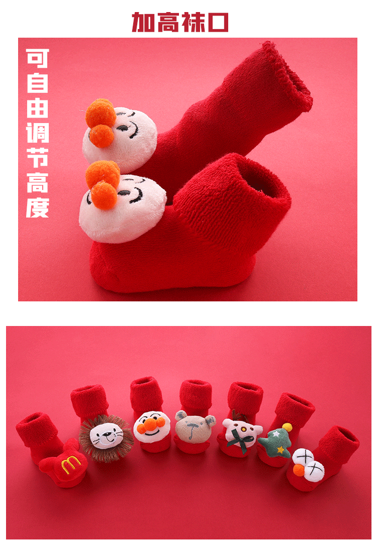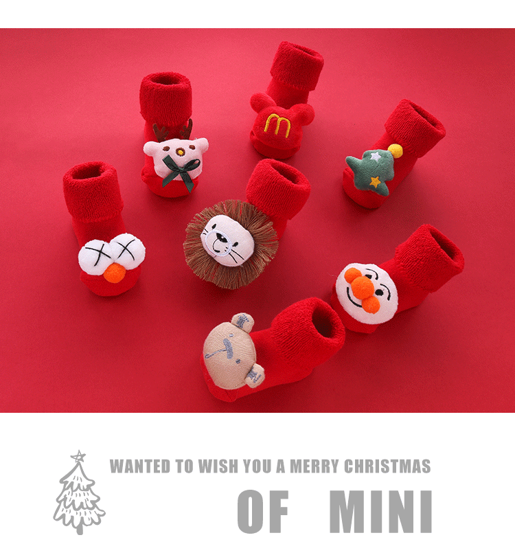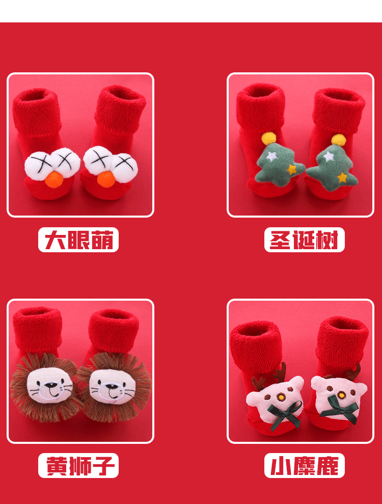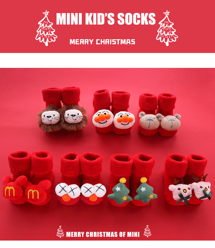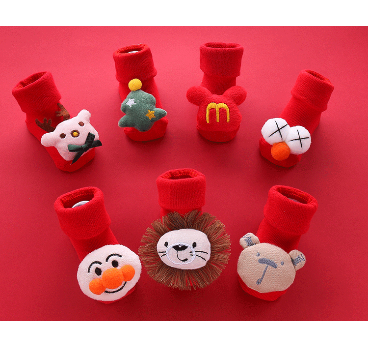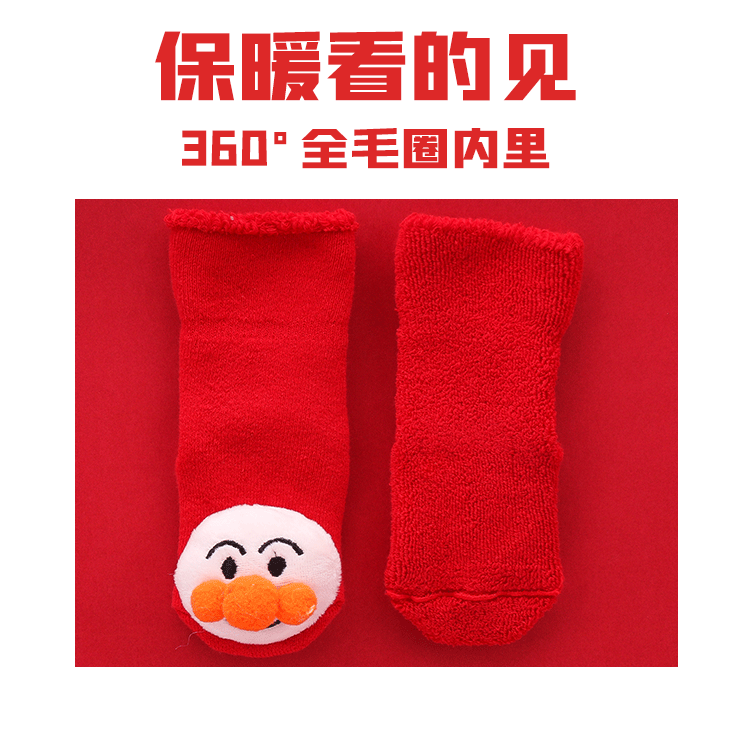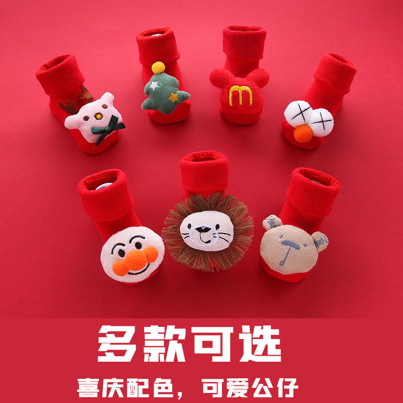 Осень и зима сгущенные новогодние рождественские большие красные мультфильмы детские носки красные носки, носки, детские анти -слабые носки для обучения