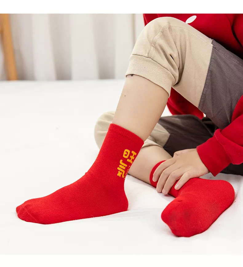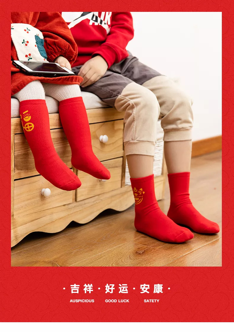 Детские демисезонные носки, красная раскраска, утепленный оберег на день рождения подходит для мужчин и женщин, удерживающие тепло нескользящие зимние гольфы, 2021 года, новая коллекция, средней длины