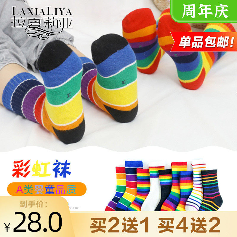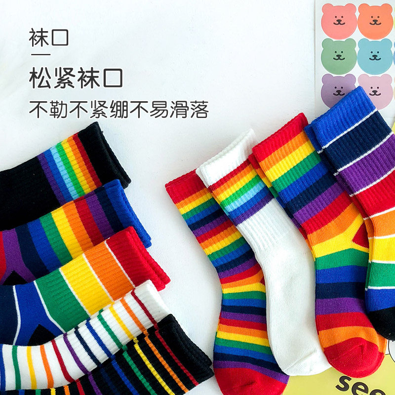 Детские радужные брендовые гольфы для мальчиков, осенние летние носки, средней длины