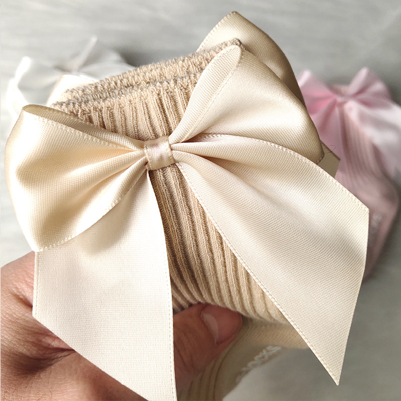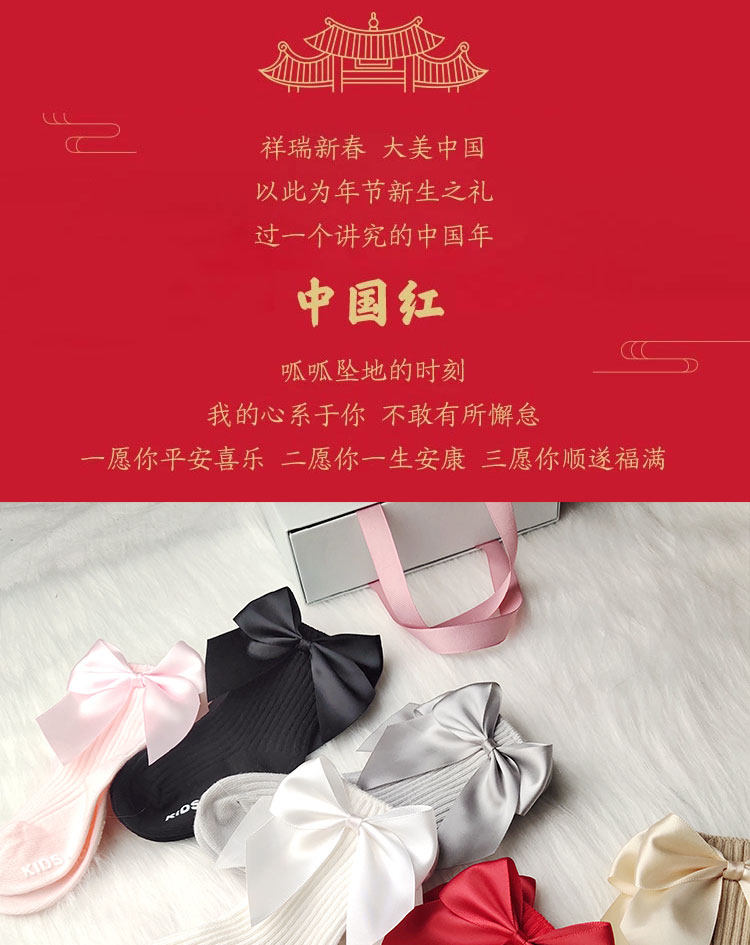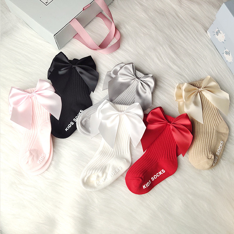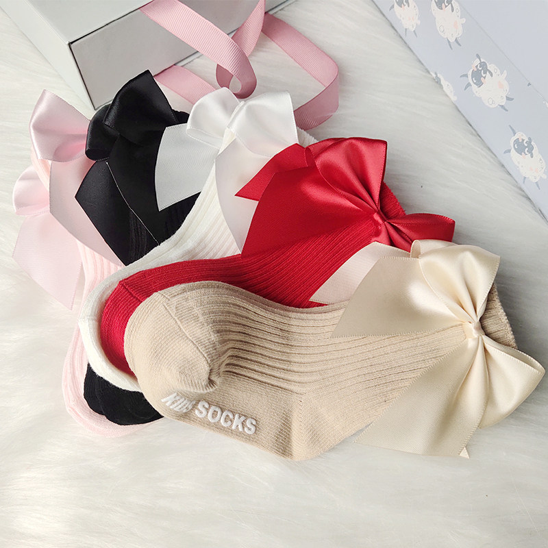Брендовые праздничнные красные детские носки для девочек, гольфы с бантиком для новорожденных, средней длины