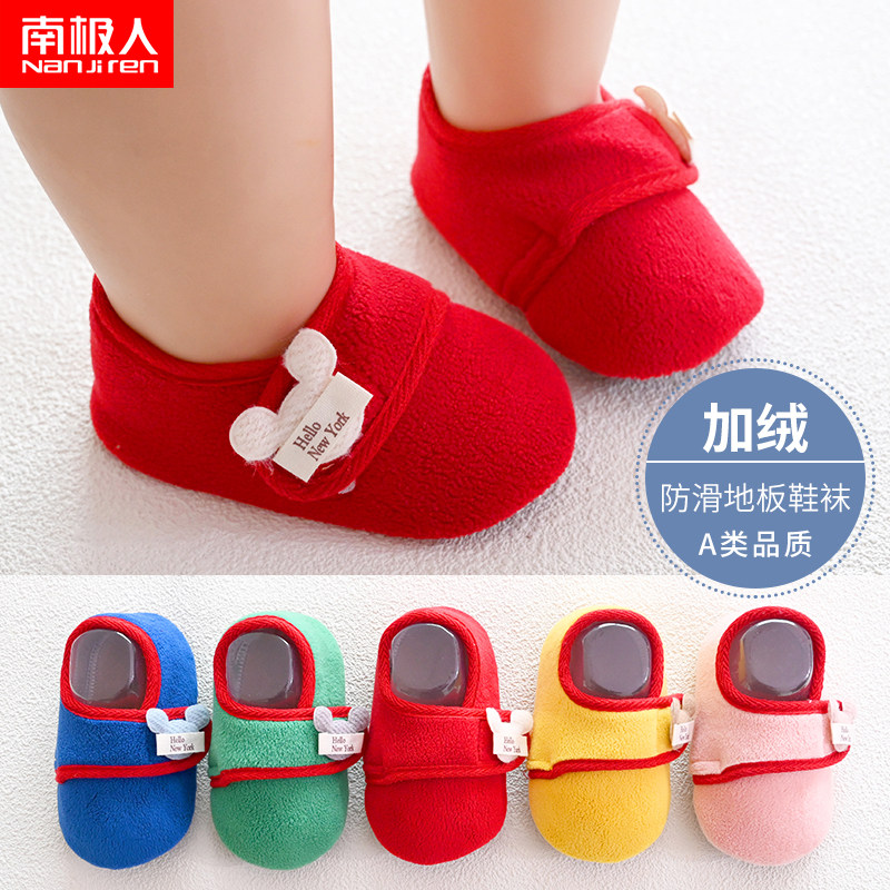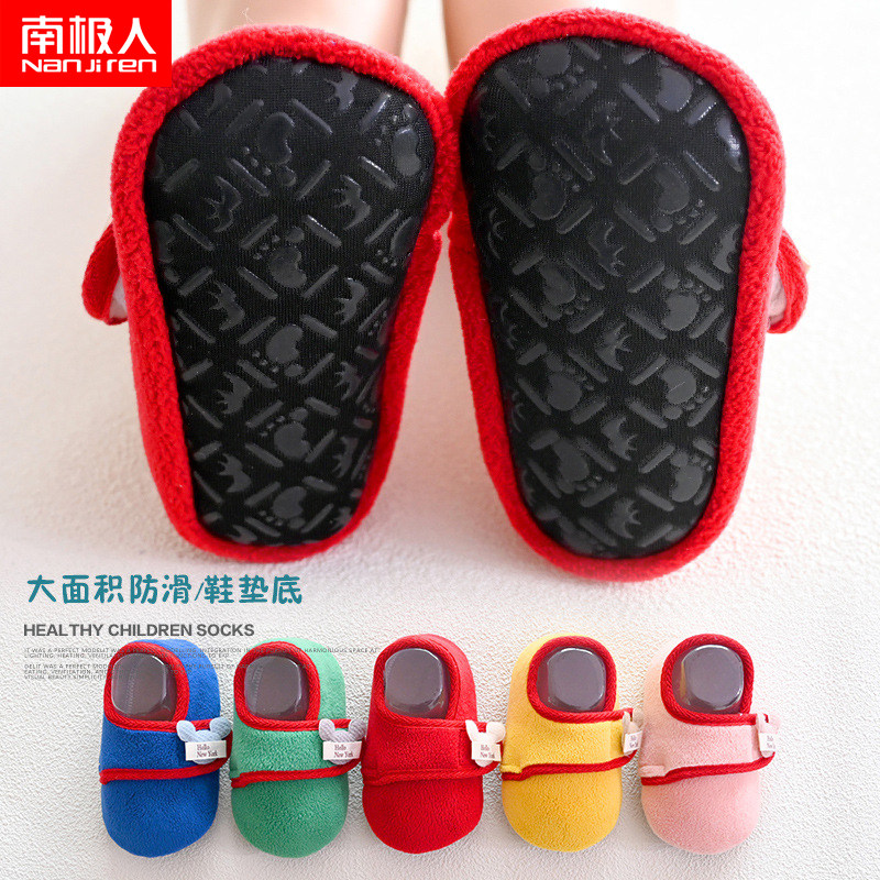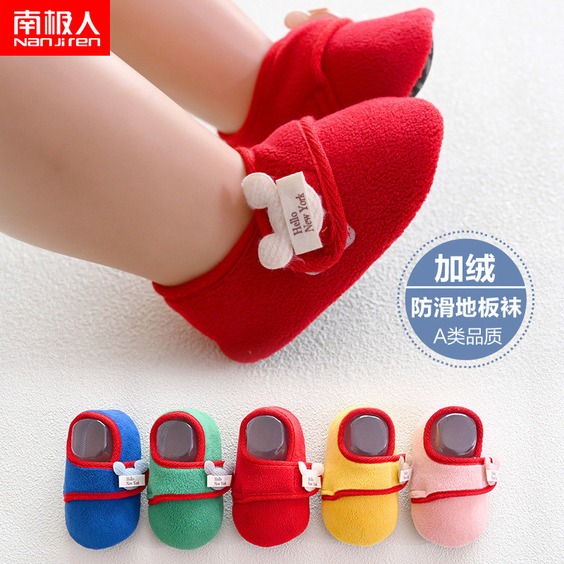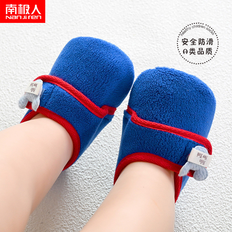 南极人 Детские осенне-зимние напольные носки, домашняя нескользящая детская обувь и носки с мягкой подошвой, а также бархатная теплая детская обувь для малышей