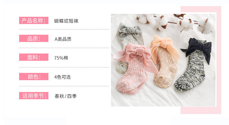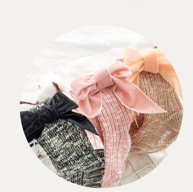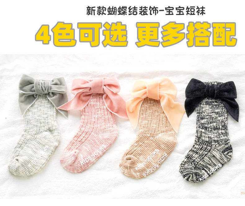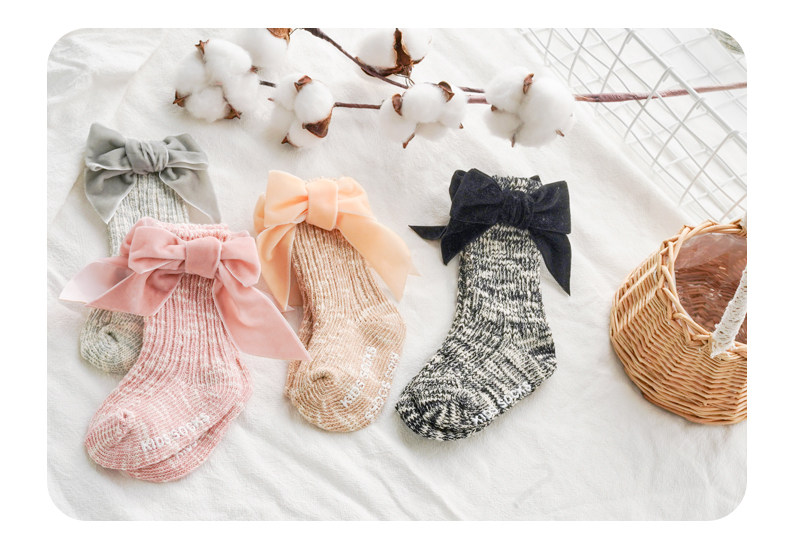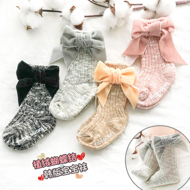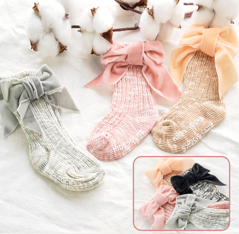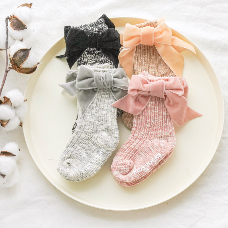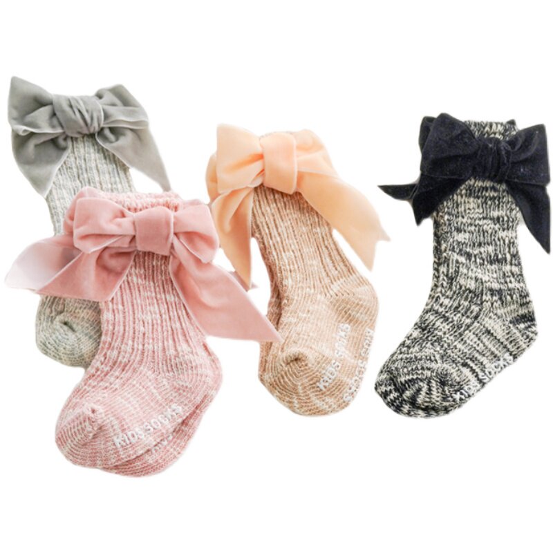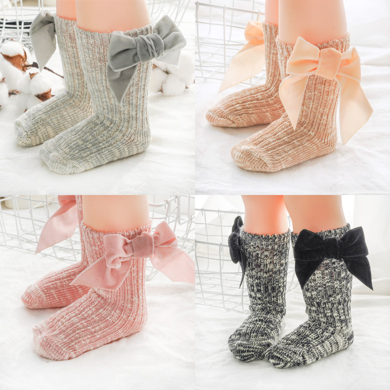 Осенние детские хлопковые носки для девочек, трендовые гольфы с бантиком для новорожденных, средней длины