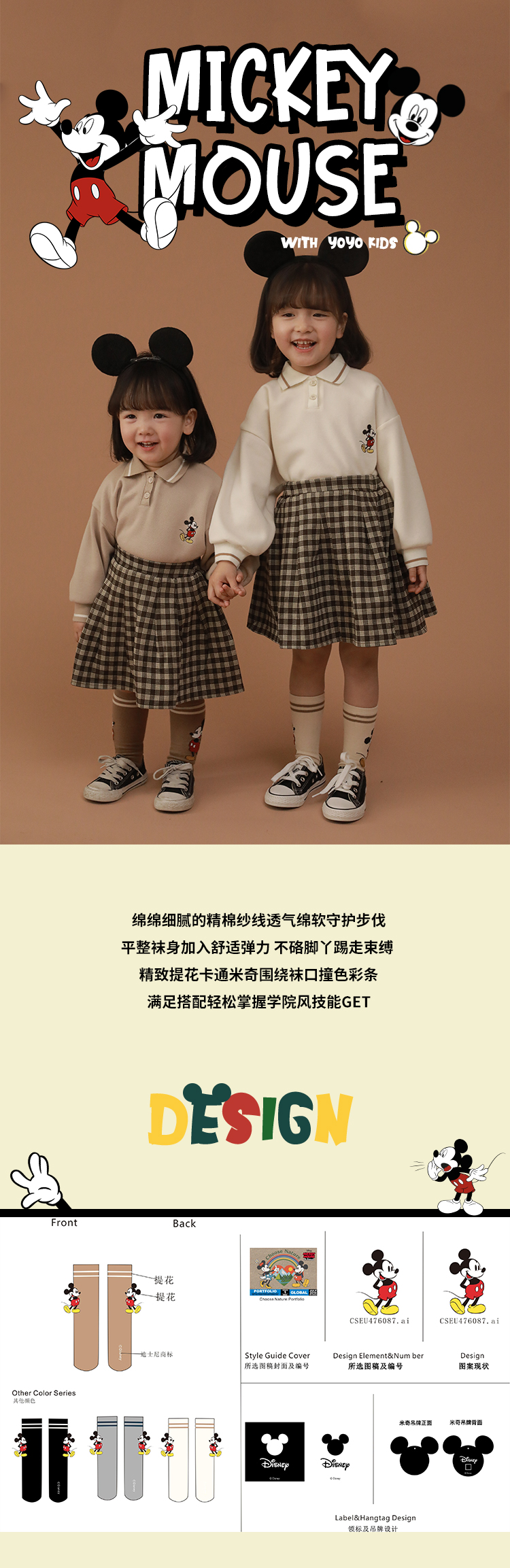 Дисней, детские осенние носки, мультяшные весенние тонкие гольфы, Дисней Микки Маус, средней длины