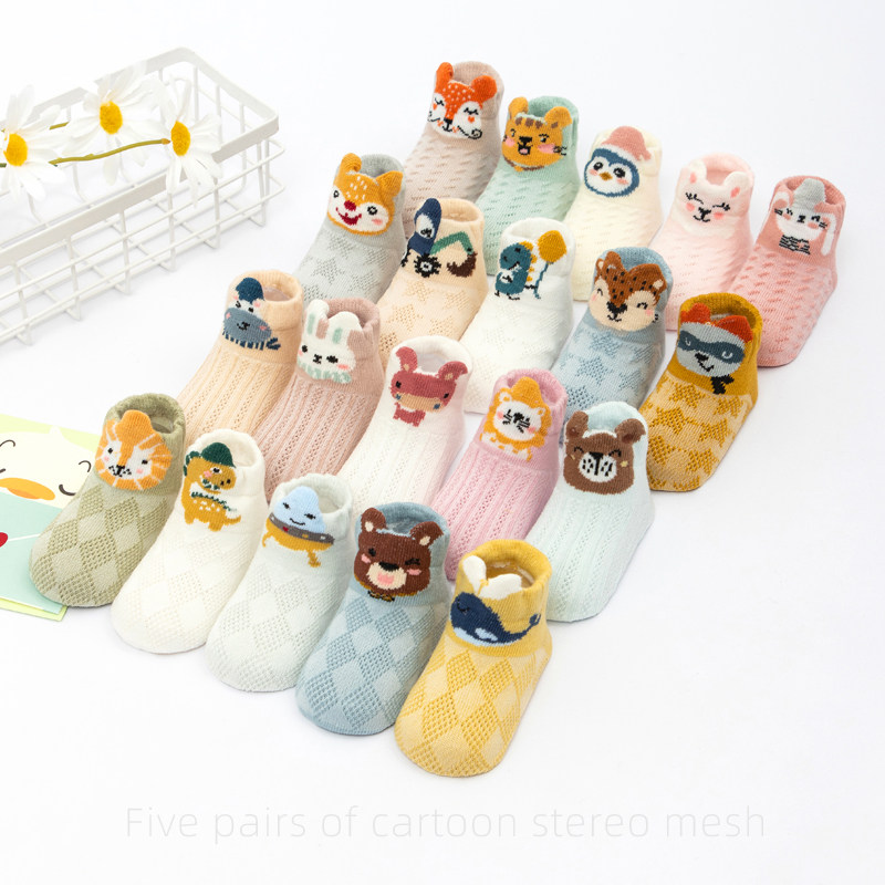 Детские летние тонкие дышащие хлопковые милые носки подходит для мужчин и женщин, 1-3-5 лет