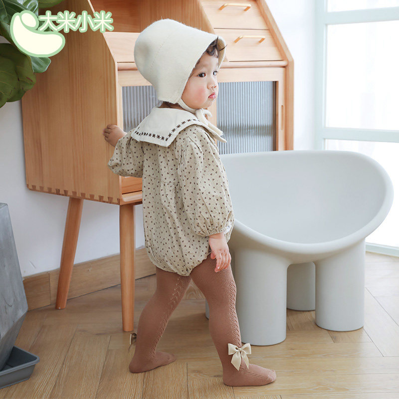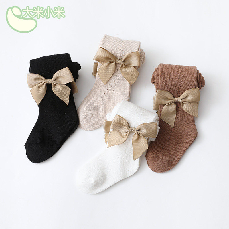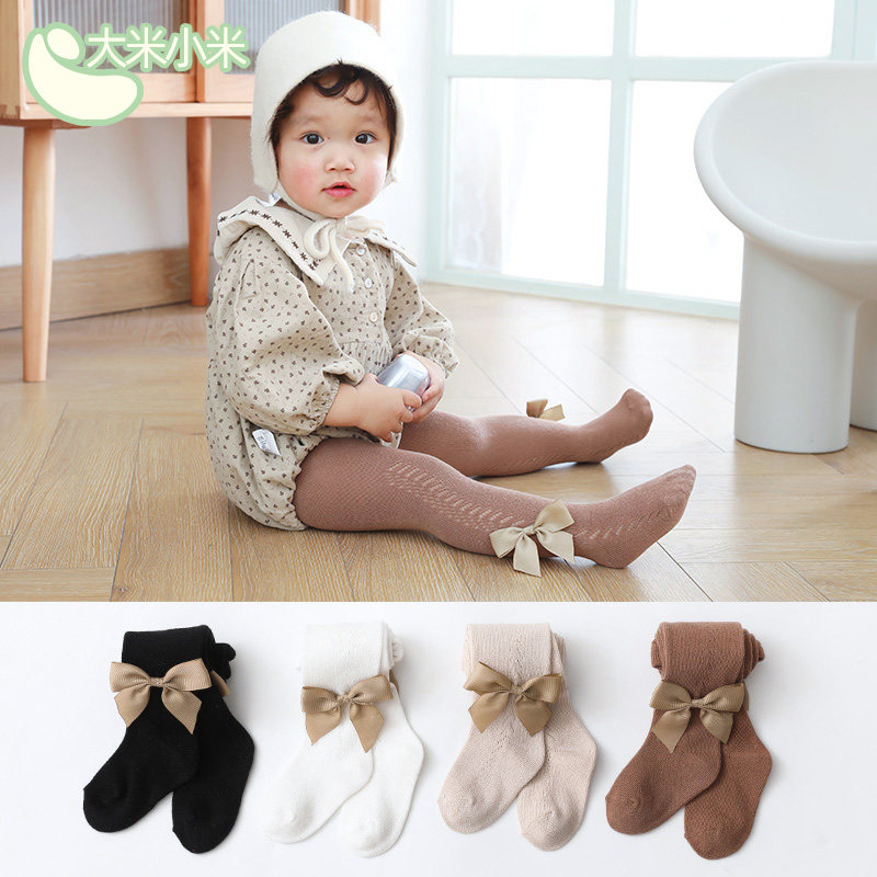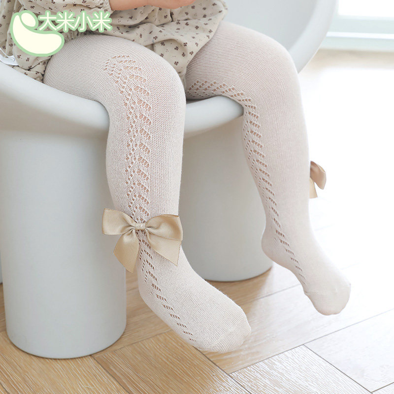 Детские летние тонкие хлопковые колготки, дышащие леггинсы с бантиком
