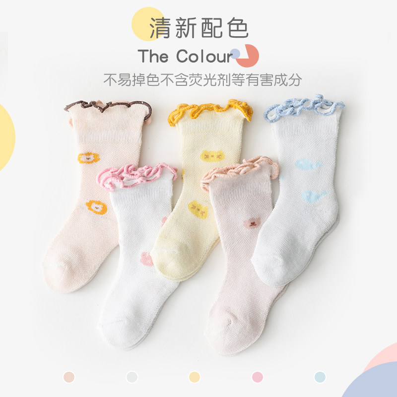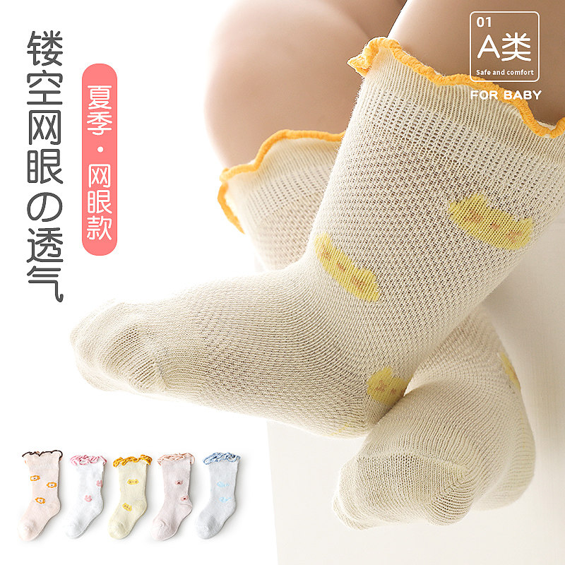 Детские тонкие летние хлопковые дышащие носки, гольфы для новорожденных, средней длины