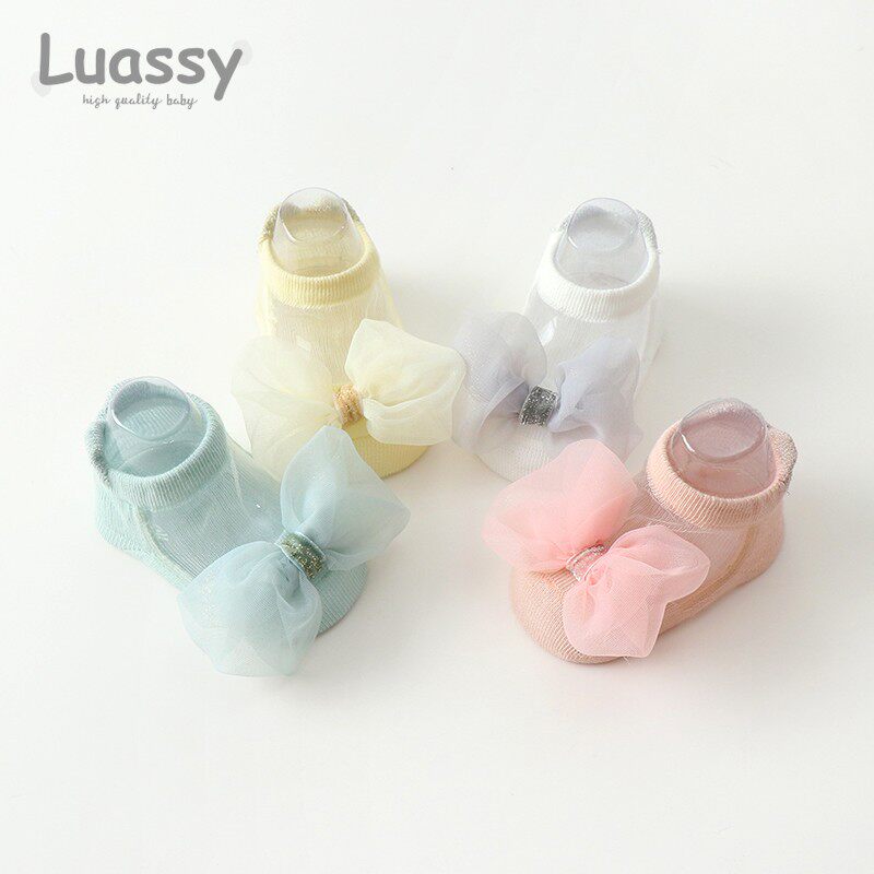 Летние тонкие детские дышащие милые нескользящие носки для новорожденных