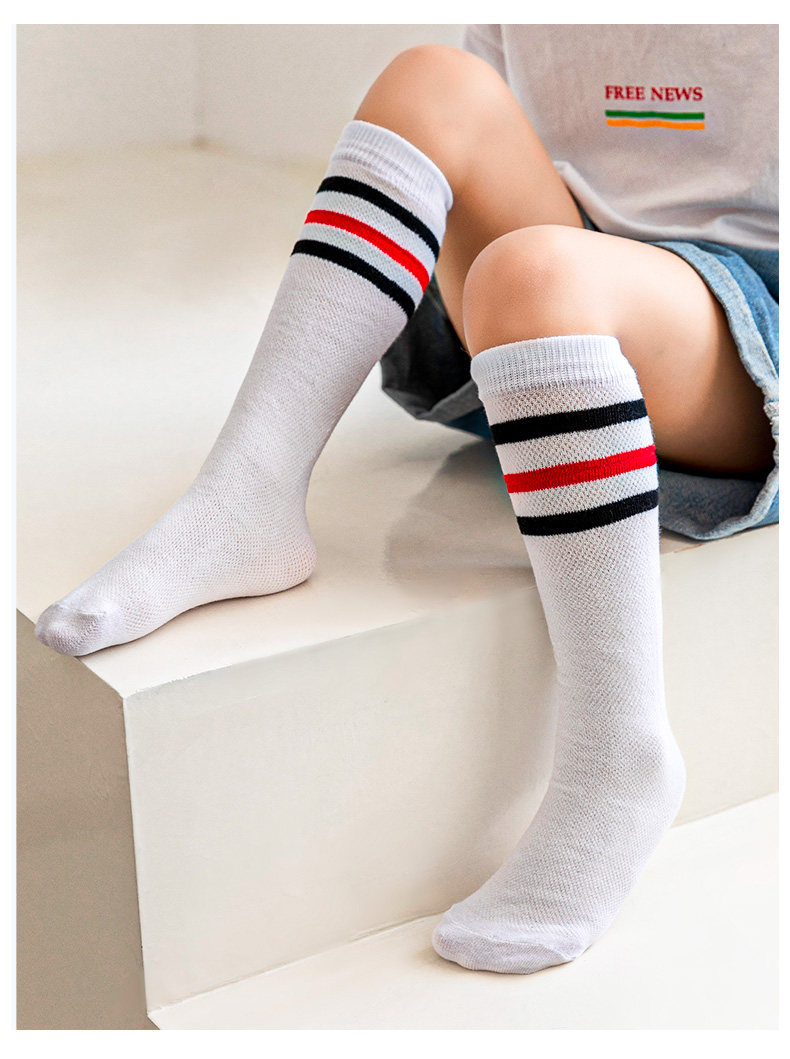 Детские хлопковые летние тонкие футбольные осенние носки, в корейском стиле, средней длины