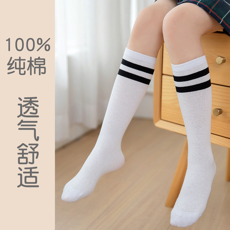 Детские летние тонкие гольфы, высокие сапоги для школьников и студентов, футбольные хлопковые антибактериальные дышащие носки, средней длины