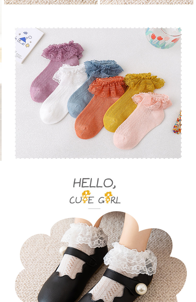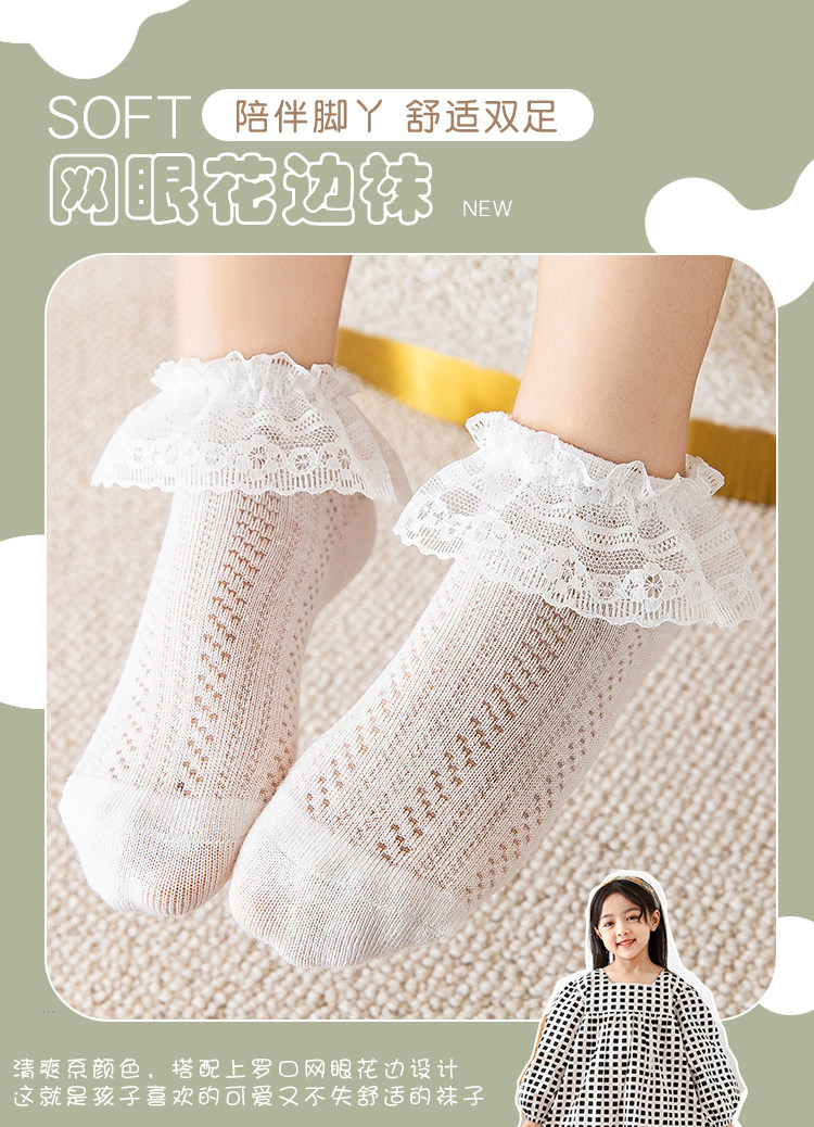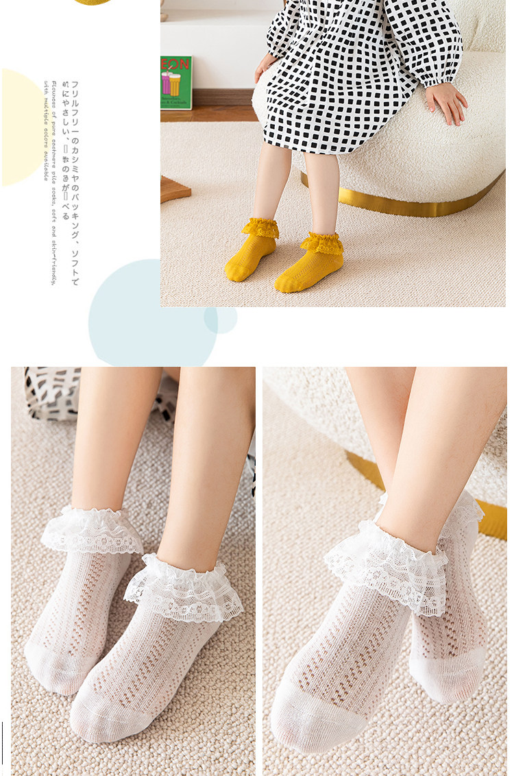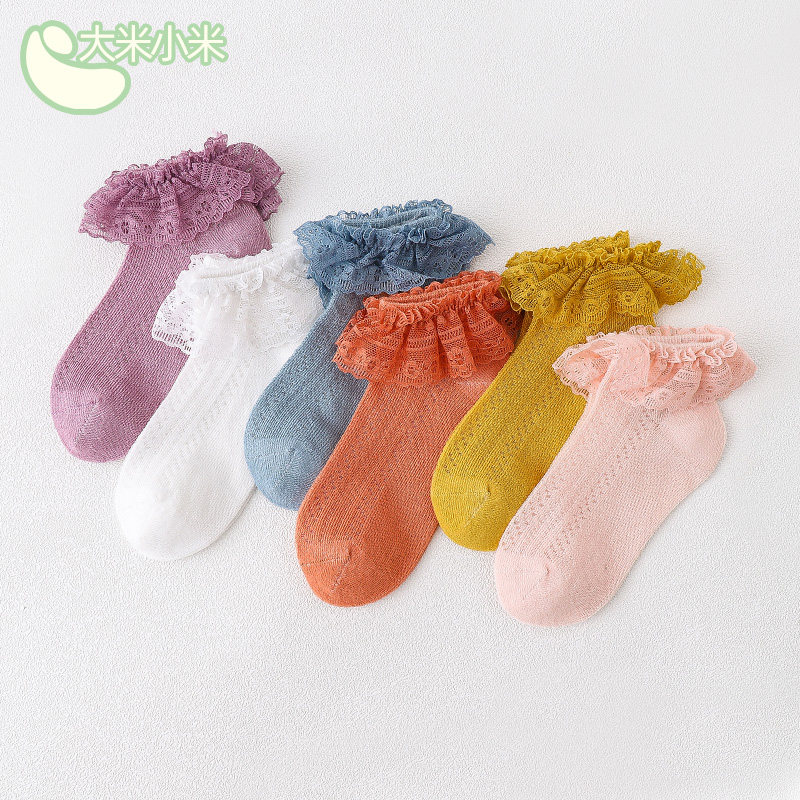 Летние тонкие хлопковые детские кружевные дышащие носки для принцессы, кружевное платье