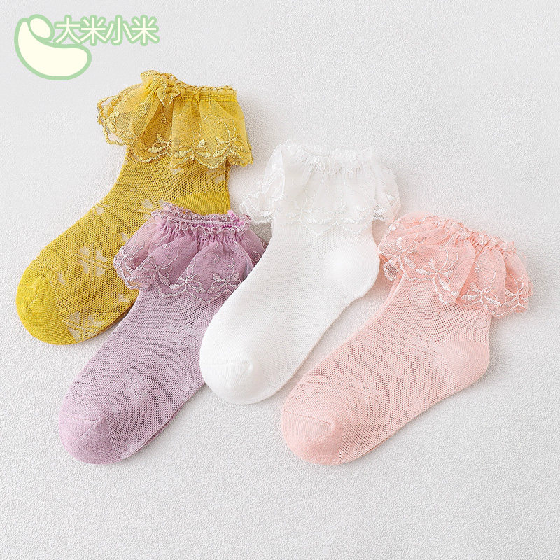 Летние тонкие хлопковые дышащие носки для девочек, кружевной детский наряд маленькой принцессы, кружевное платье, средней длины