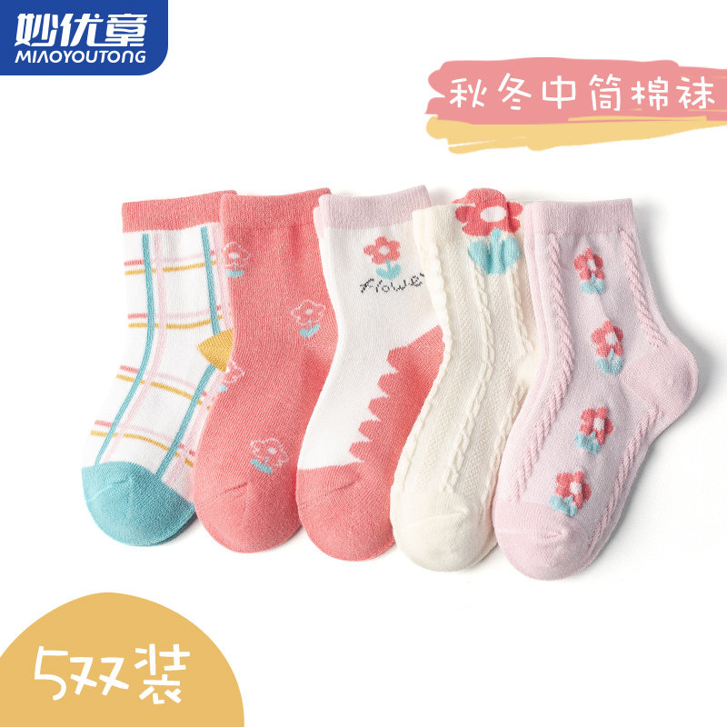 妙优童 Детские осенние дышащие носки, хлопковые гольфы для мальчиков и девочек, средней длины