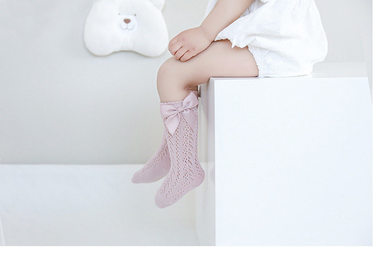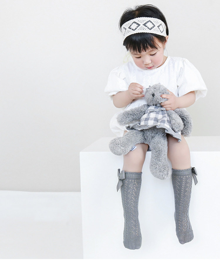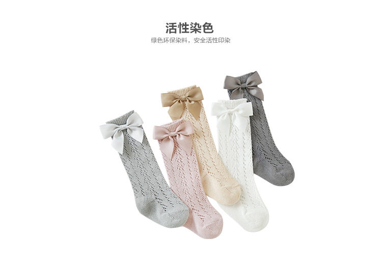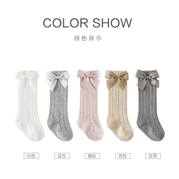 Детские летние тонкие хлопковые носки, дышащие гольфы с бантиком для принцессы, высокие сапоги, средней длины