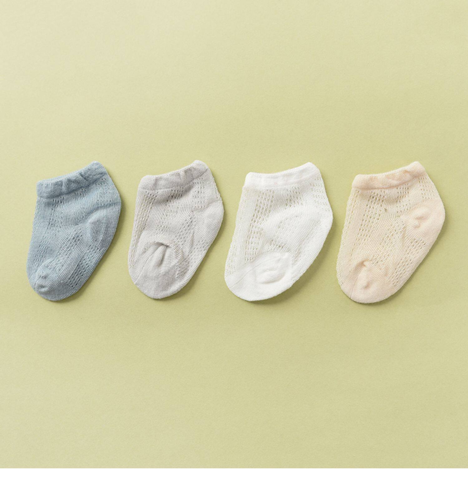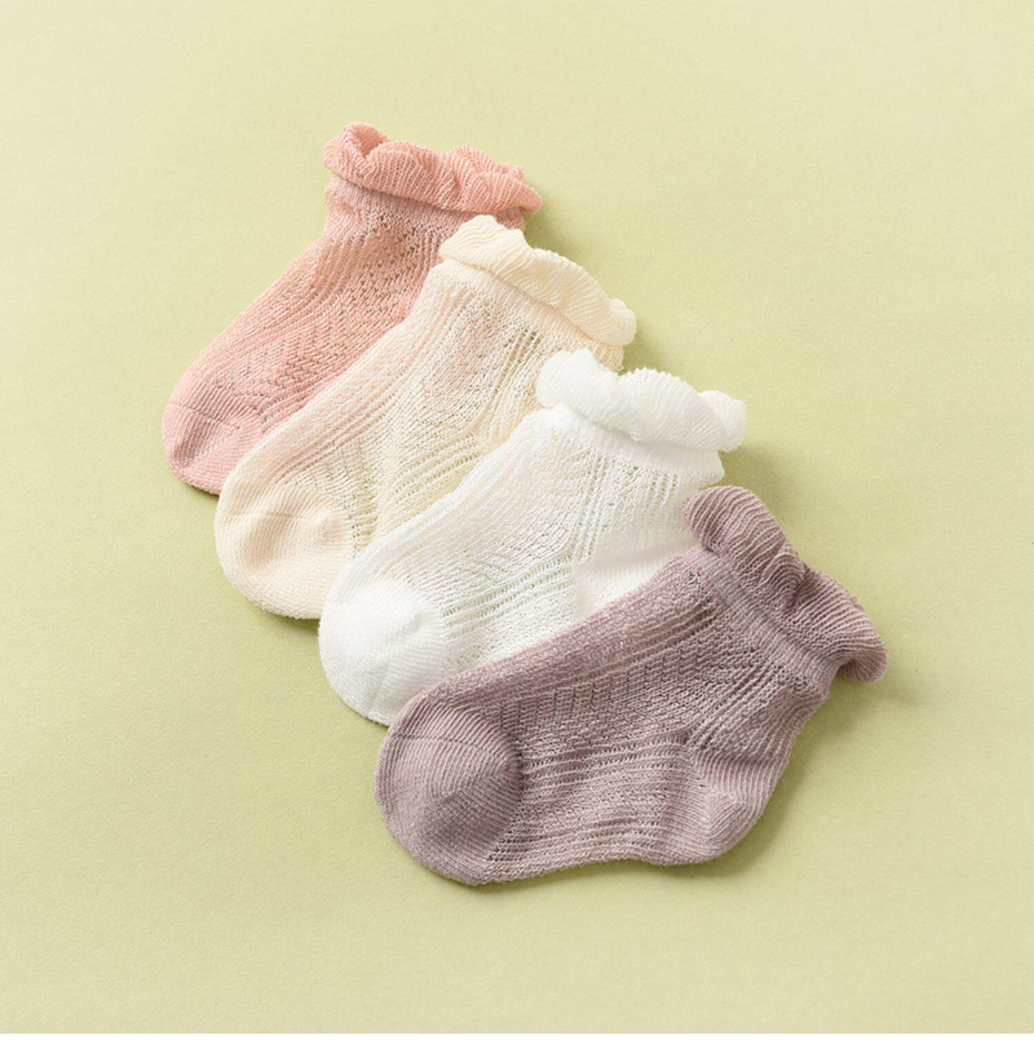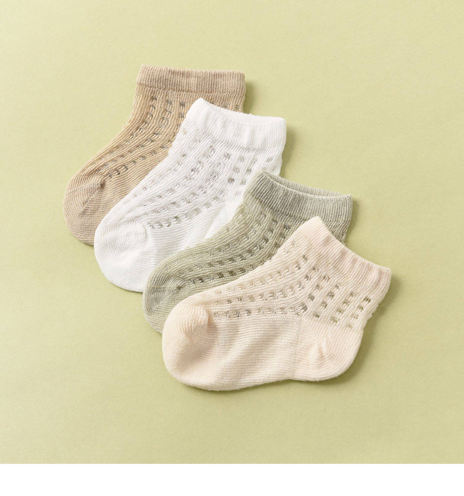 Приобретите продукцию четыре пары детских колготок в сеточку, тонкие носки для новорожденных, детские носки для мальчиков и девочек 0-6 лет, короткие носки.