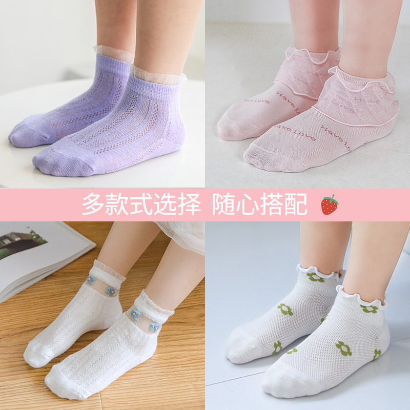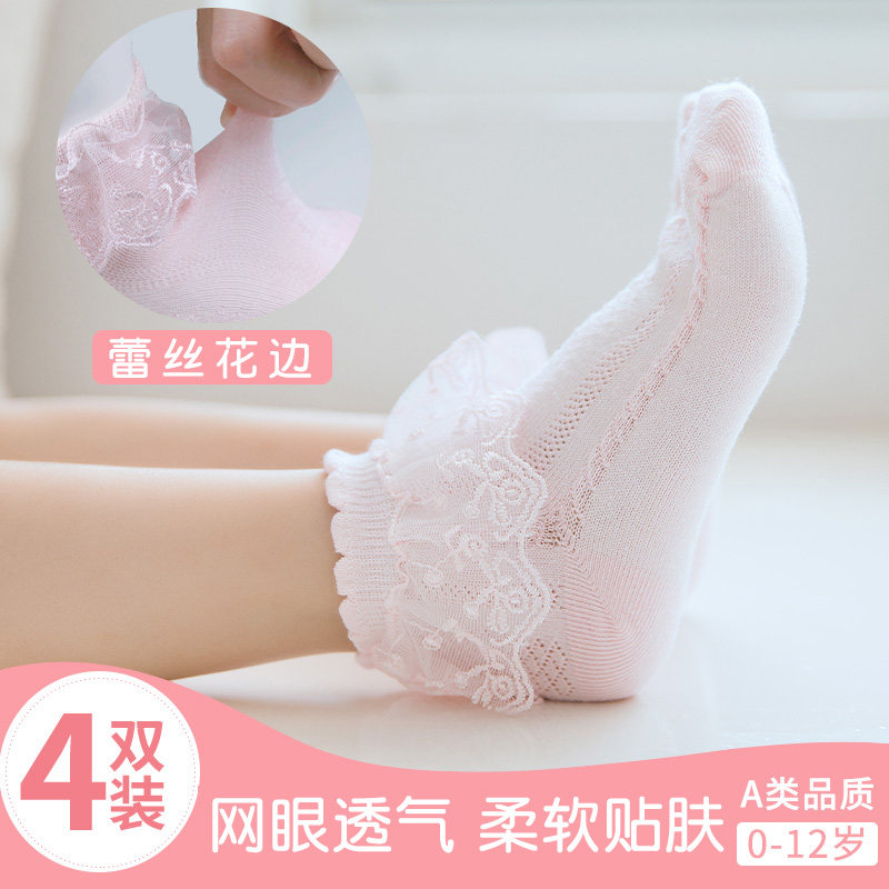 Детские демисезонные хлопковые тонкие кружевные носки, летние гольфы, средней длины