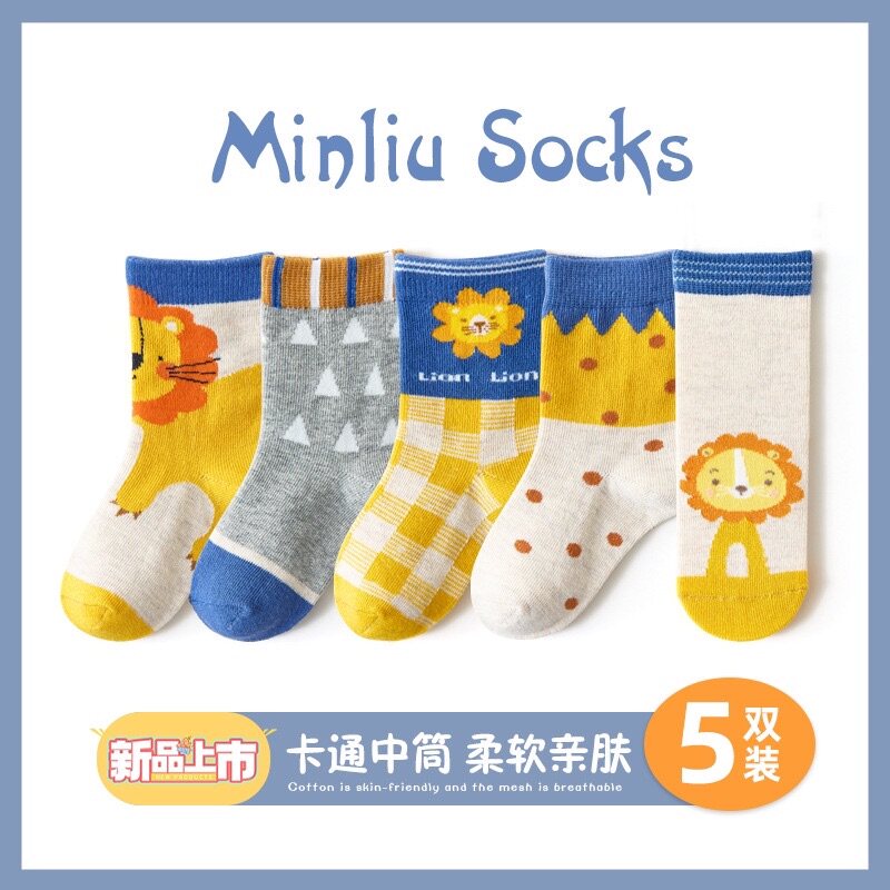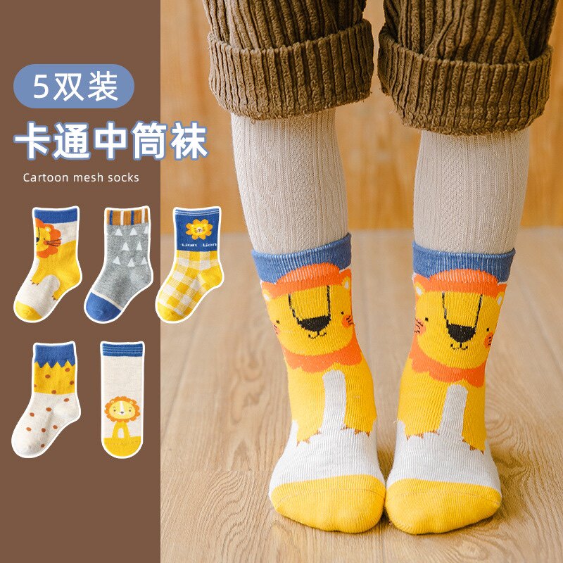 Хлопковые носки для мальчиков, мультяшные детские тонкие гольфы, средней длины